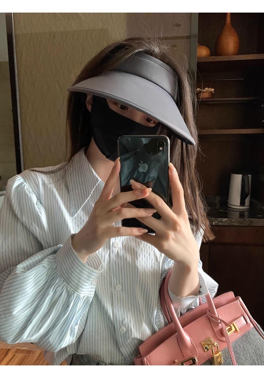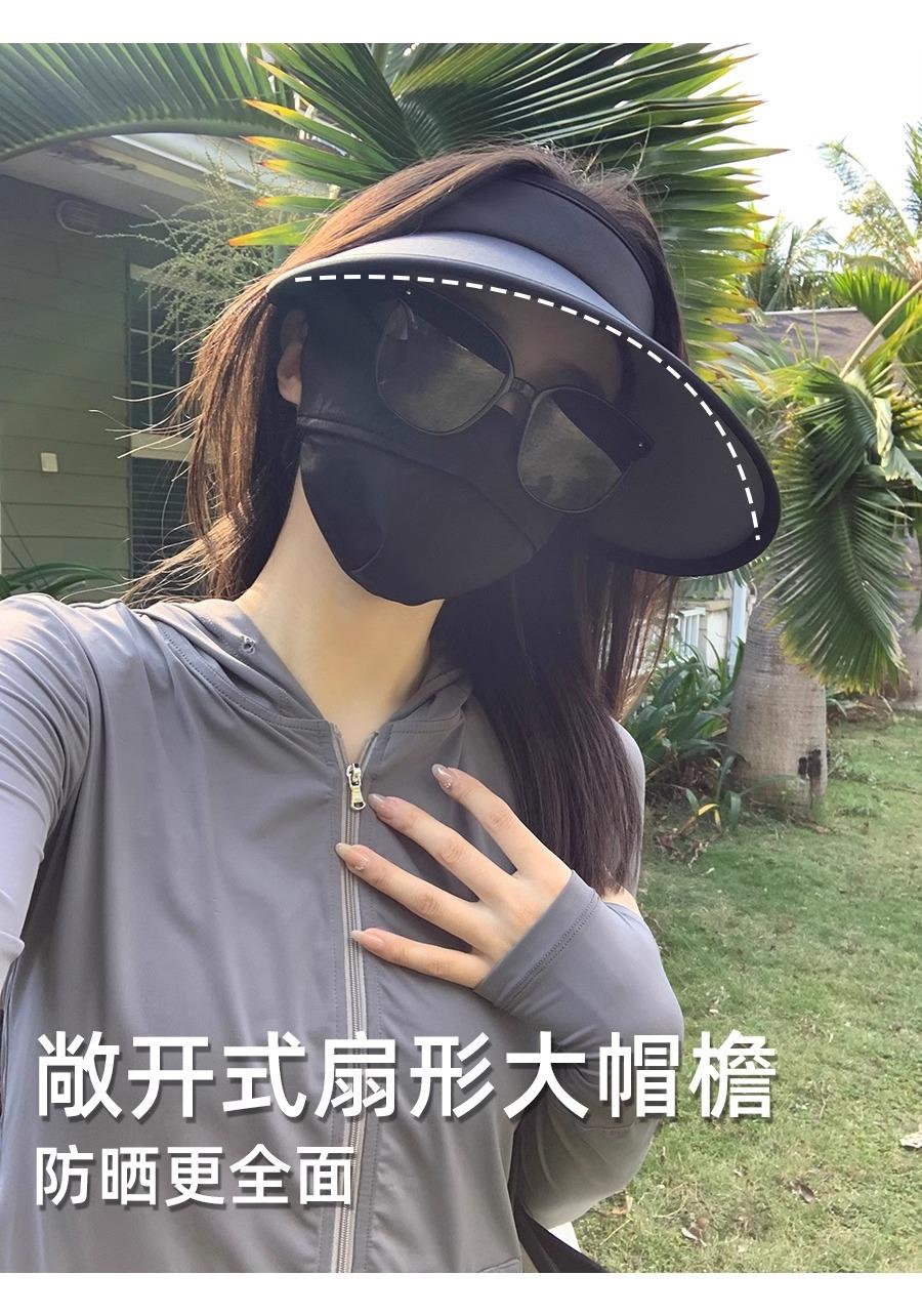 Sombrero de sol de verano de ala ancha para niños, sombrero de sol anti-ultravioleta de goma negra para la cara, sombrero de copa vacía, sombrero de sol de seda de hielo