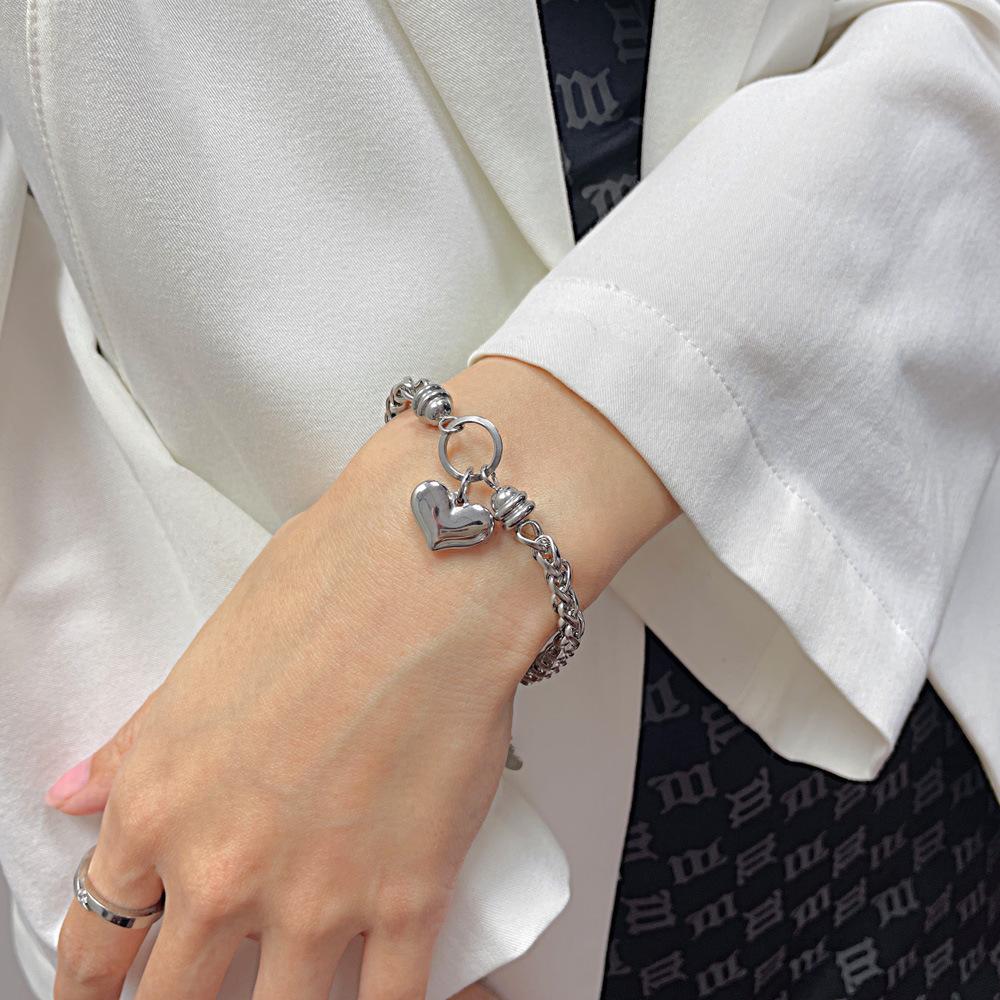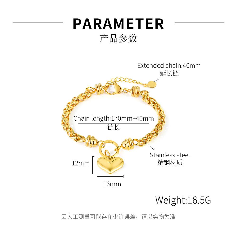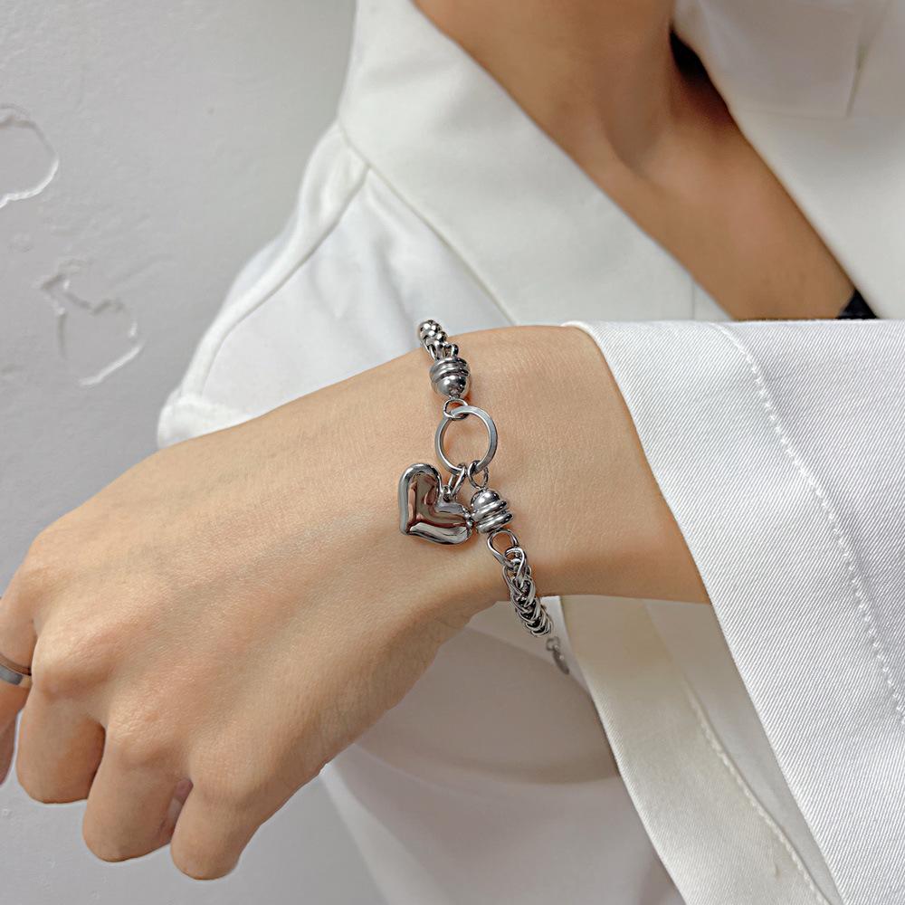Joyería al por Mayor Moda Sentido de Alta Gama Amor Pulsera de Acero de Titanio para Mujer Lujo Ligero Francés Combinable Corazón en Forma de Corazón de Durazno Accesorios