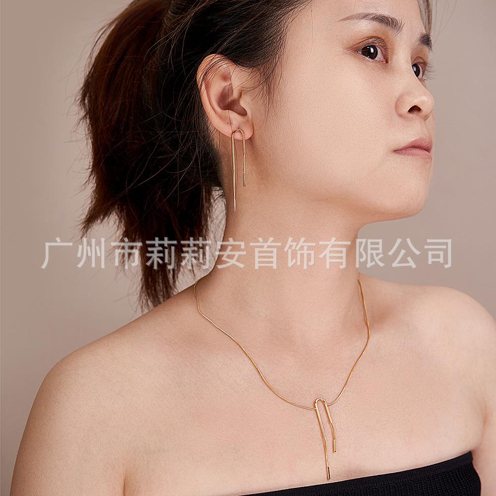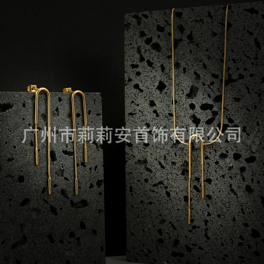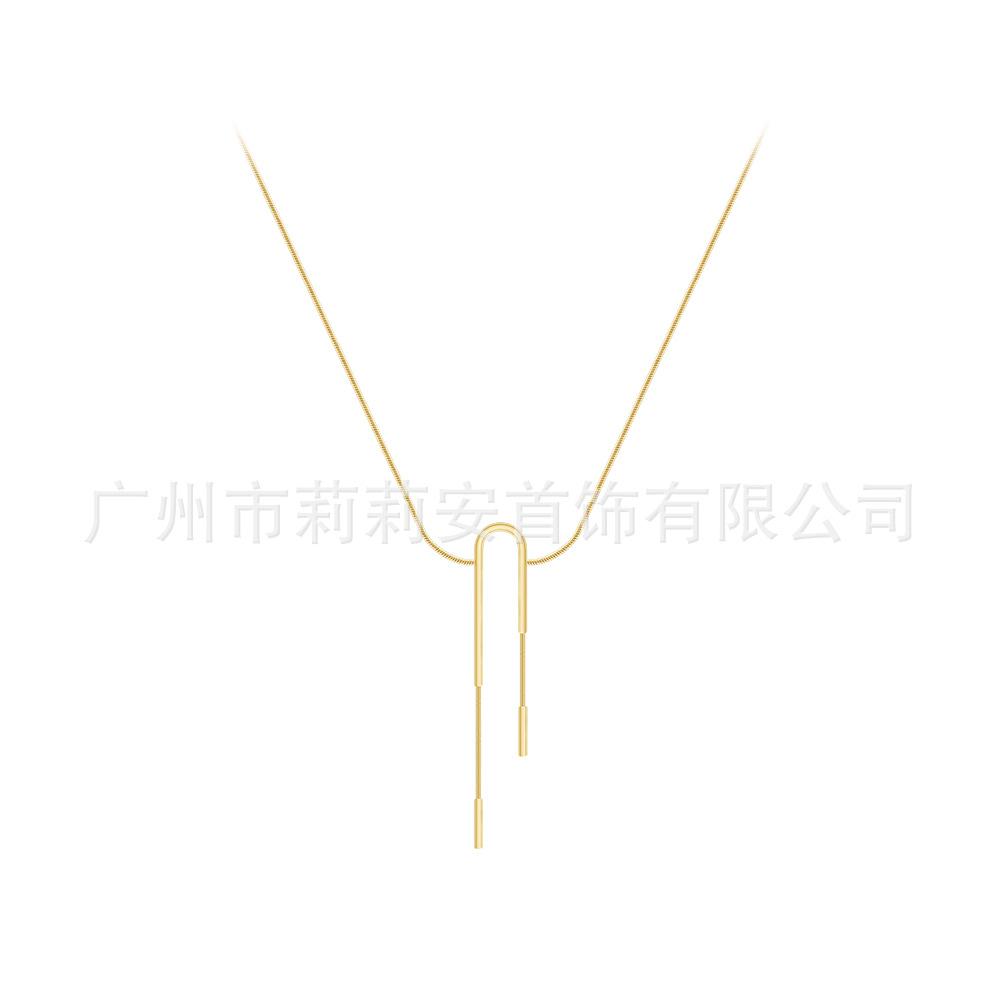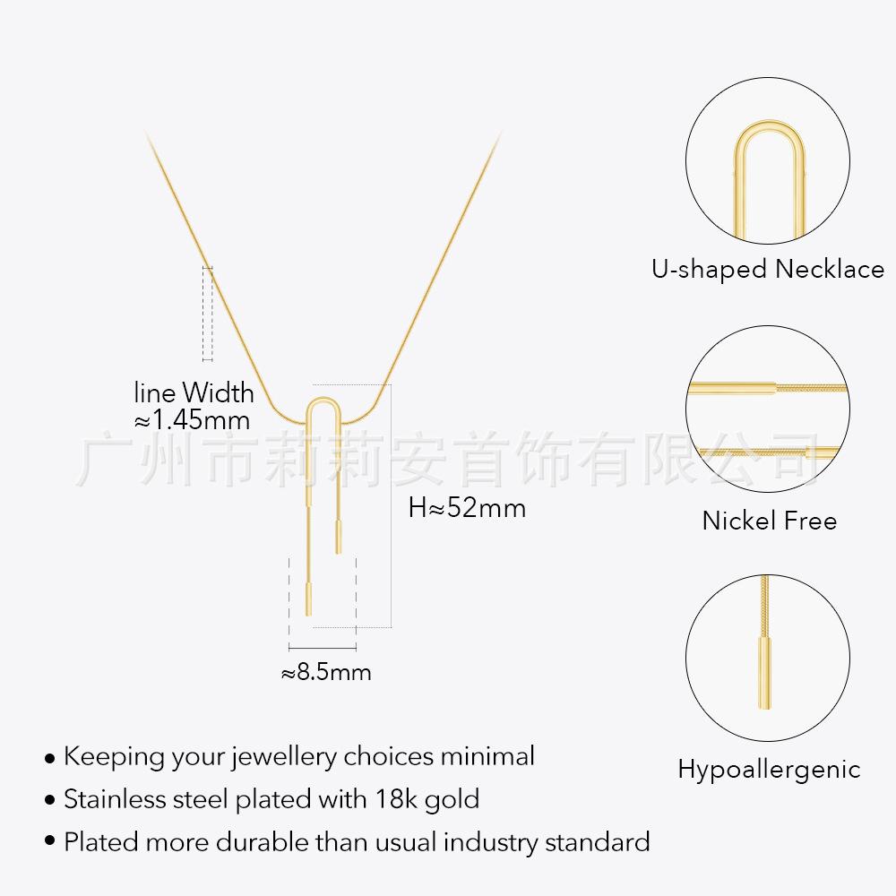 Collar con colgante de línea redonda en forma de U, geométrico, irregular, de acero de titanio chapado en oro de 18 quilates, con personalidad, P233382