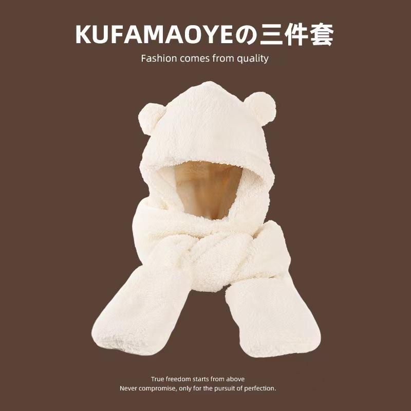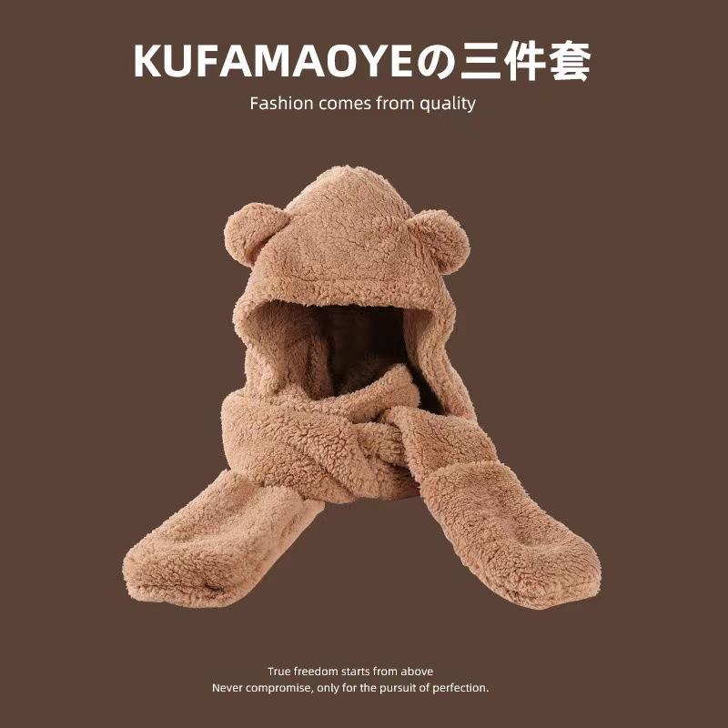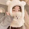 Sombrero de Otoño e Invierno Nuevo Lindo Cálido Máscara Sombrero de Oso Bufanda Guantes Integrados Popular Versátil Felpa Cuatro en Uno