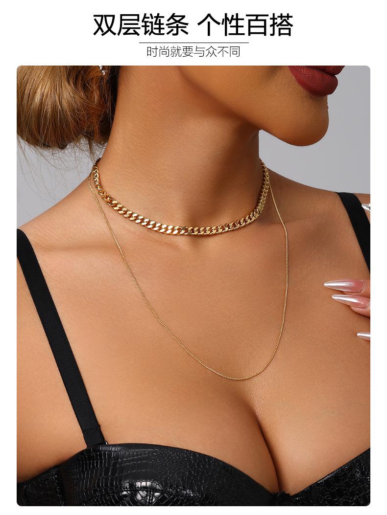 Collar de Capas Dobles Apiladas de Venta Caliente Transfronterizo Joyería para Niñas Combinable Simple de Alta Gama Cadena para la Clavícula Collar