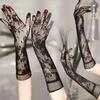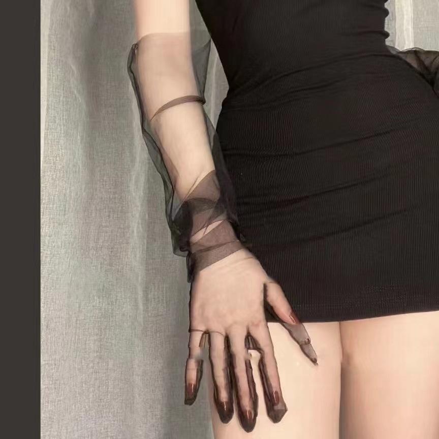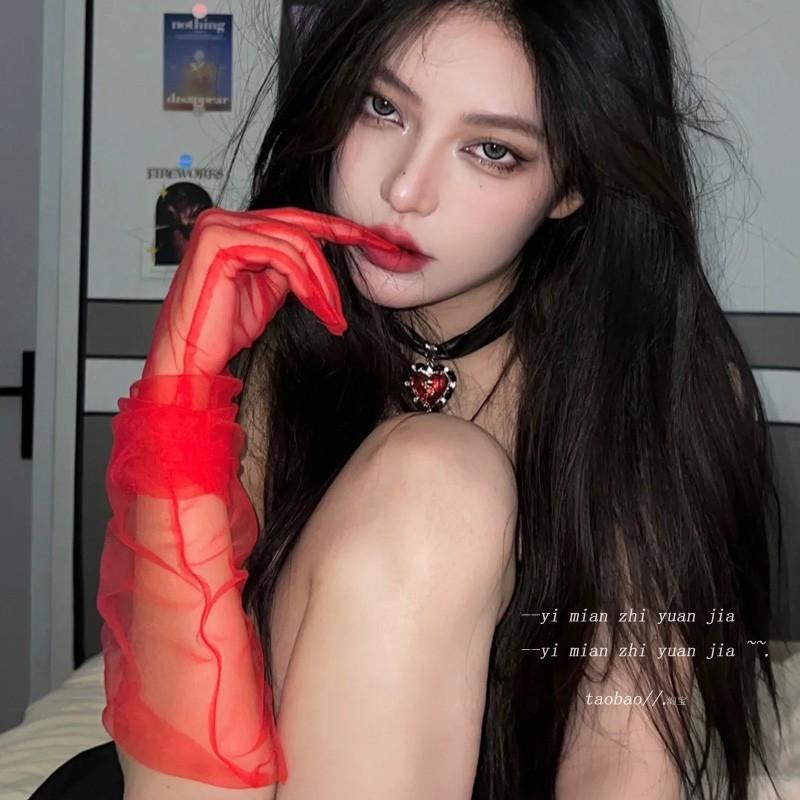 Guantes de malla súper hada de alta gama para mujer, delgados de verano, para vestido de novia, largos, color vino tinto, sobremanga, lencería sexy