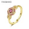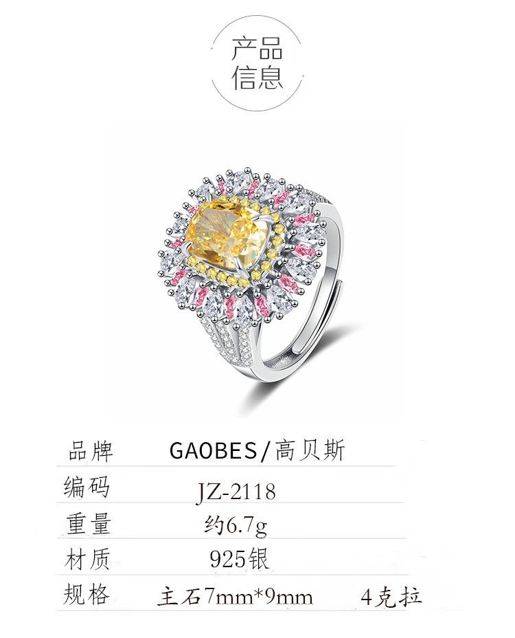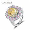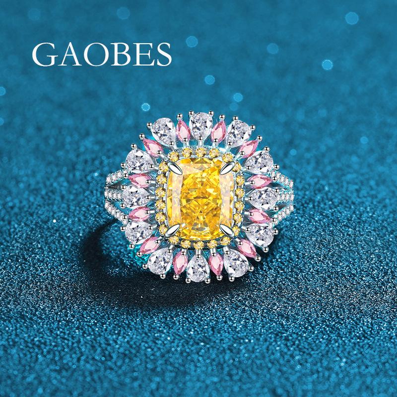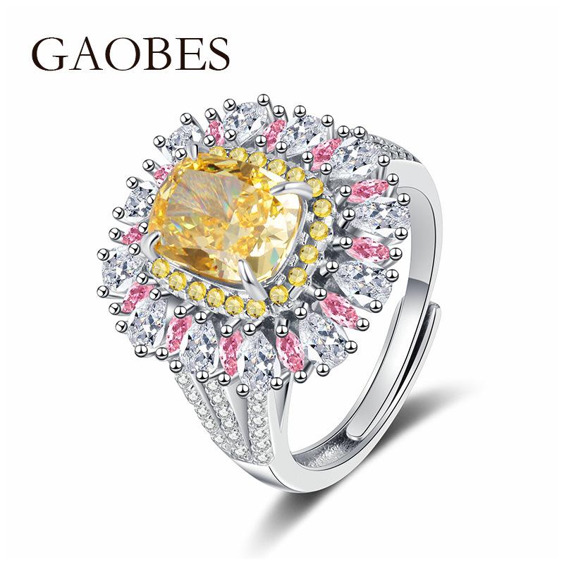 Anillo abierto de plata de ley 925 de la serie Candy de Hairui para mujer, con diamantes de alto carbono amarillo dorado y incrustaciones de diamantes rosas de 4 quilates.