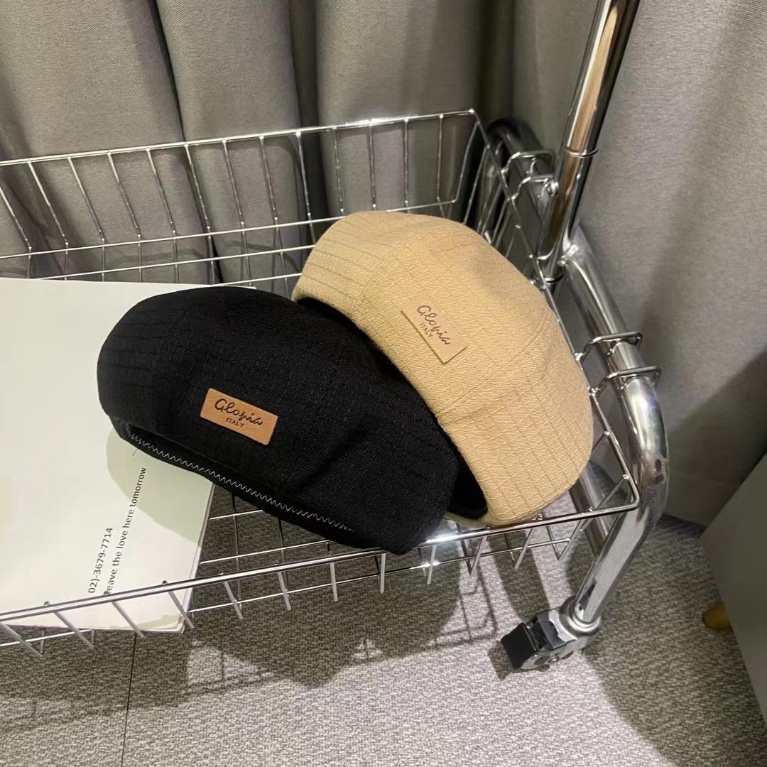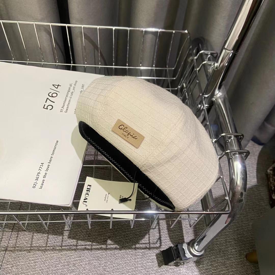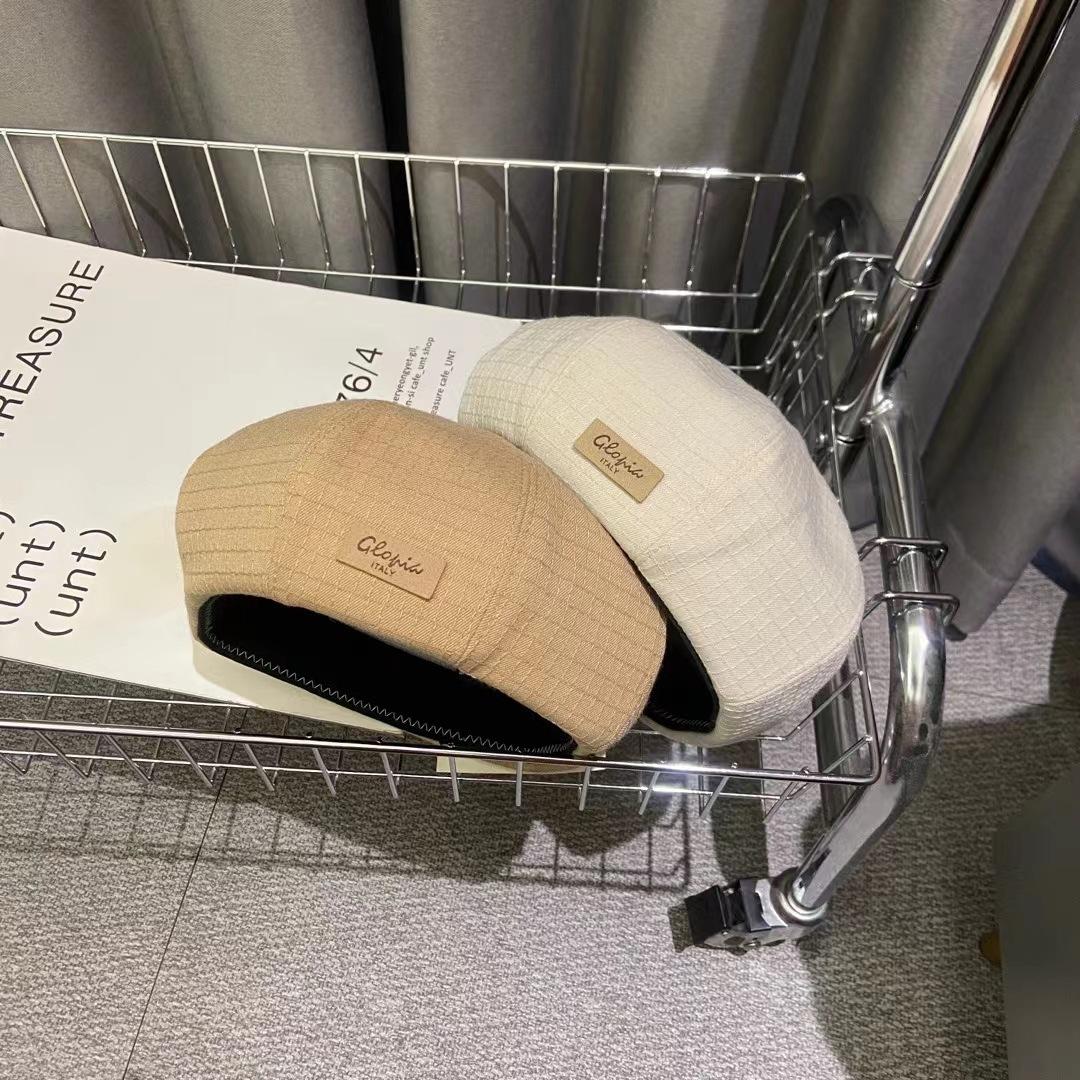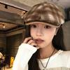 Boina con etiqueta a cuadros para otoño e invierno, estilo coreano, versátil, con aspecto de cara pequeña, estilo japonés, pintor de celebridades en línea, sombrero plano octogonal