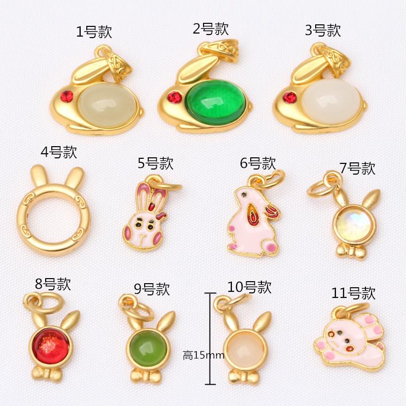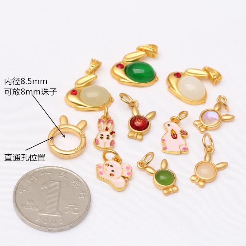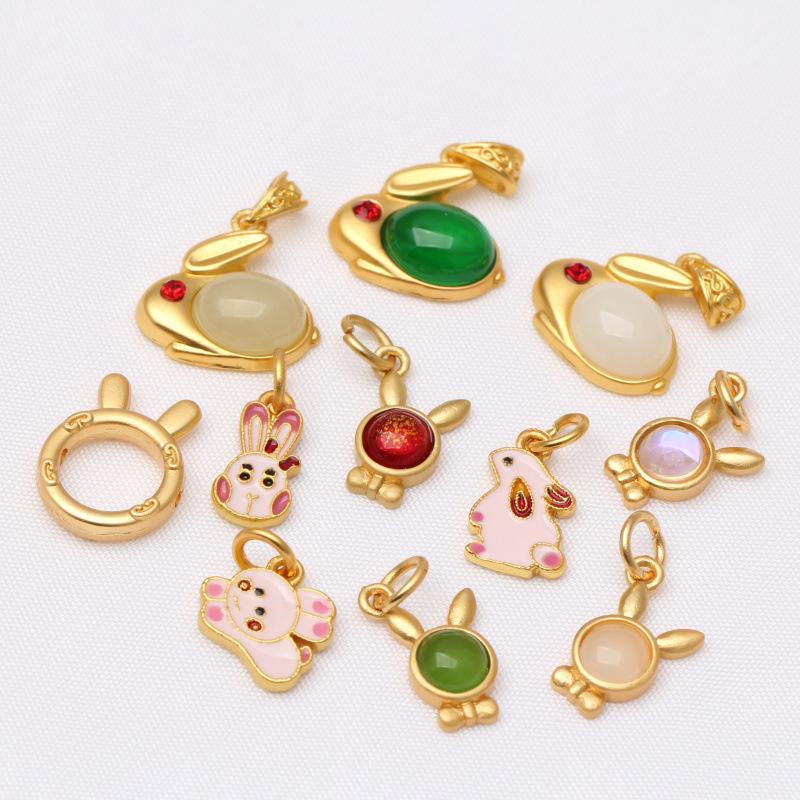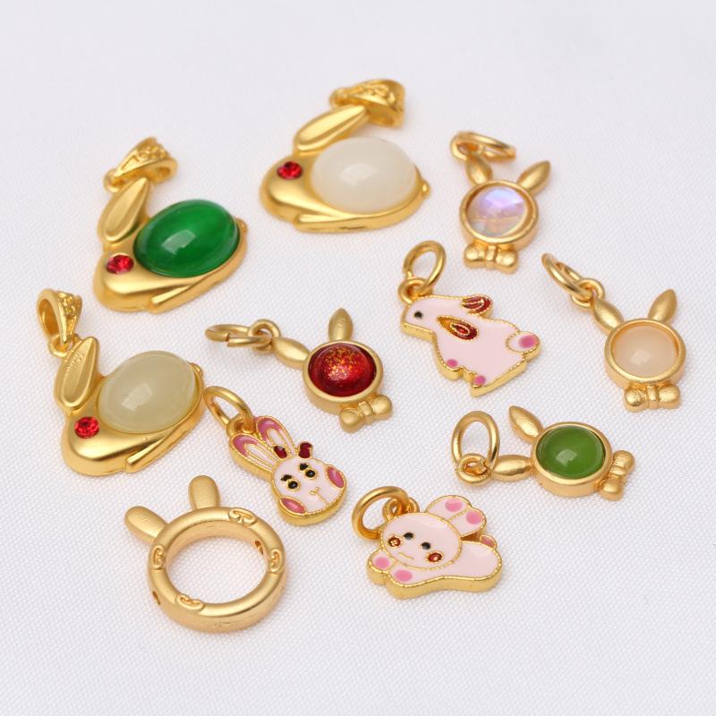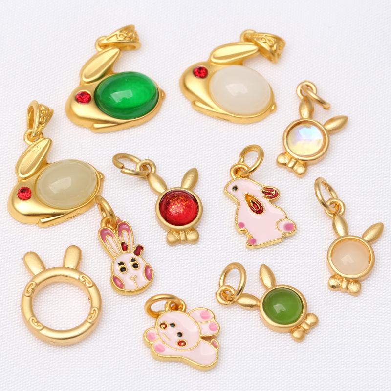 Antiguos accesorios de oro francés, colgante de conejo pequeño con incrustaciones de piedra, material de colgante DIY, pulsera, accesorios de joyería, retención de color al por mayor