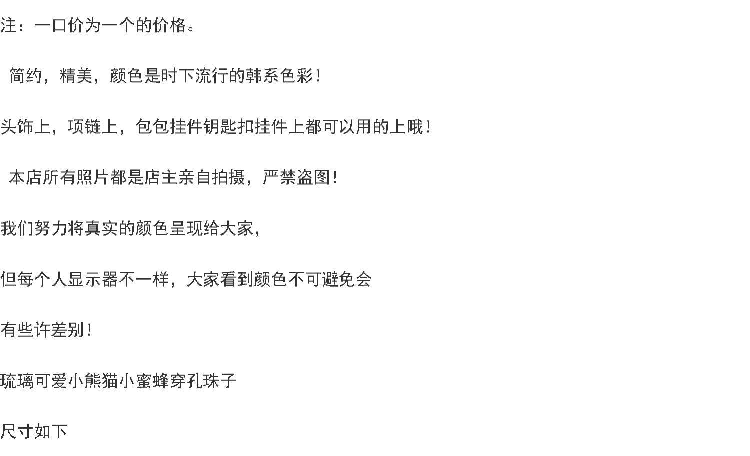 1# small bee single price, 2# pink bear single price, 3# Red Bear single price, 4# Orange slightly transparent...