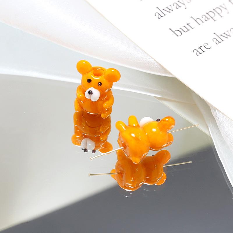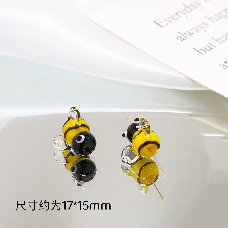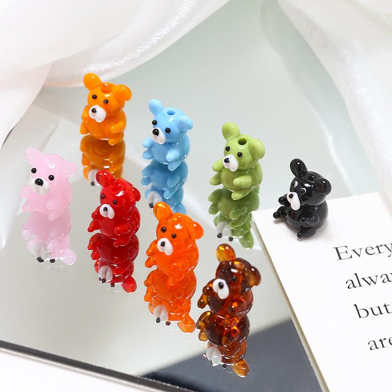 Lindo oso pequeño con abeja esmaltada, agujero recto, cuentas, joyería hecha a mano, pulsera, collar, llavero, accesorios
