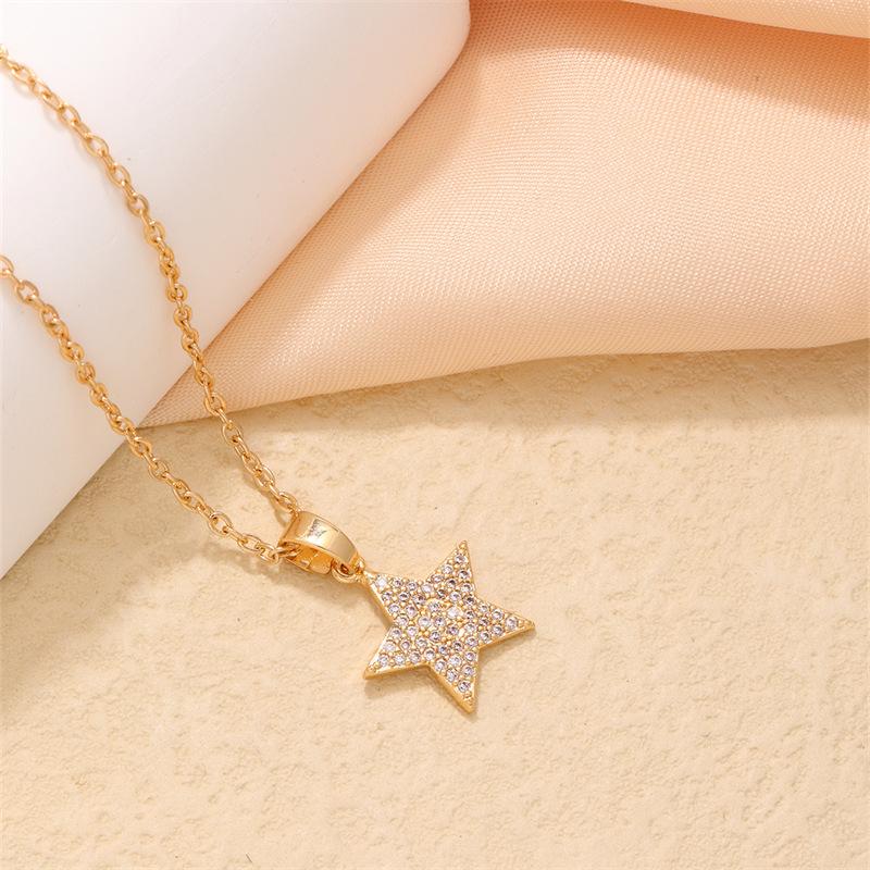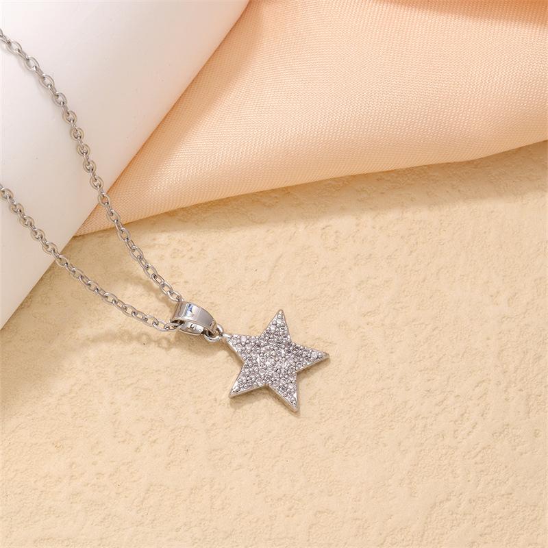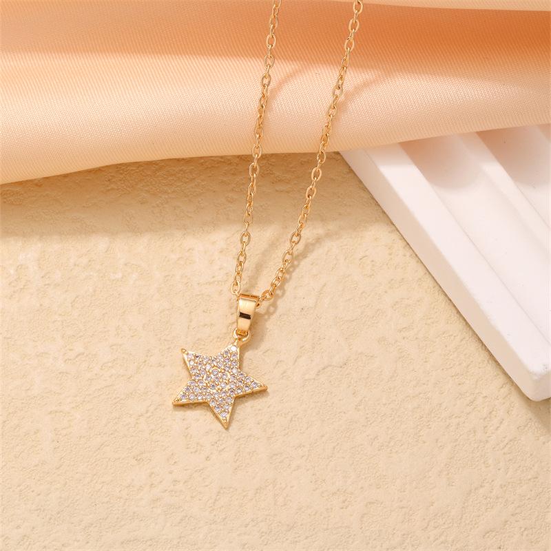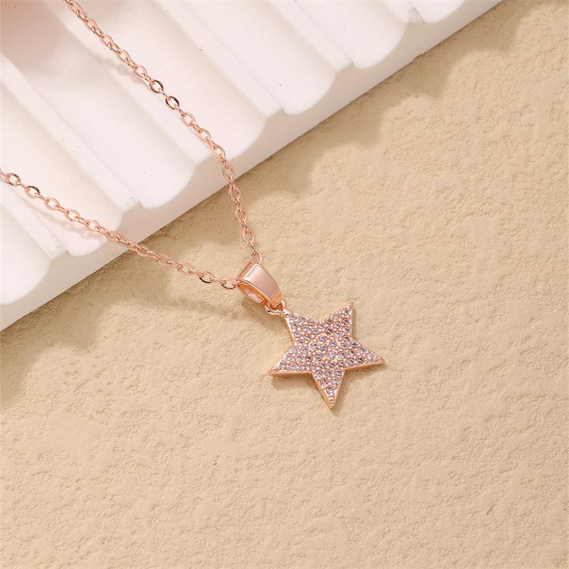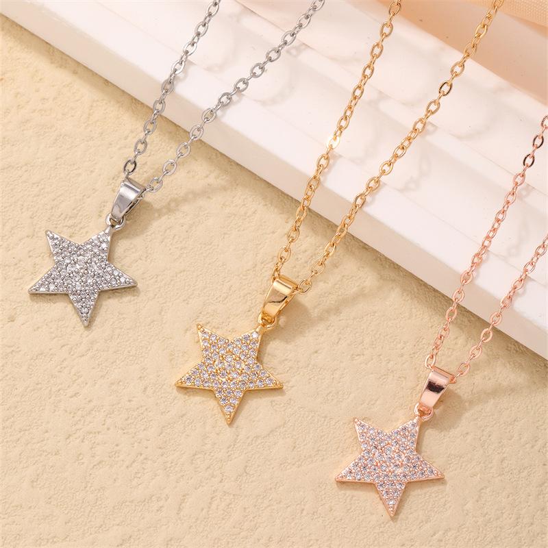 Collar de estrella de cinco puntas transfronterizo europeo y americano para mujer, colgante de moda de estrella, cadena de suéter simple de alta calidad, joyería de Yiwu para otoño e invierno
