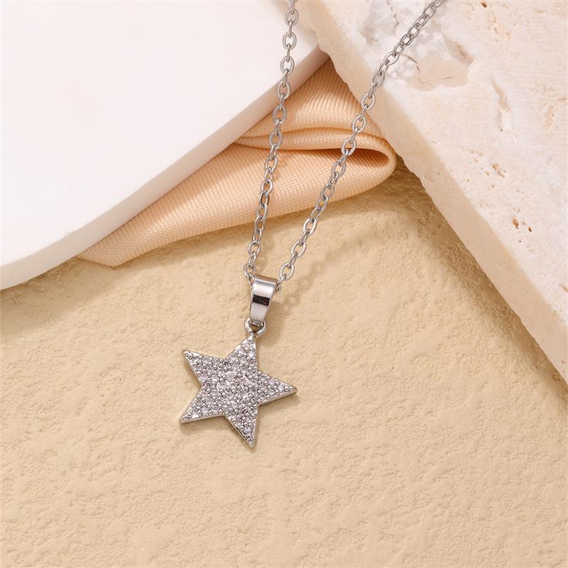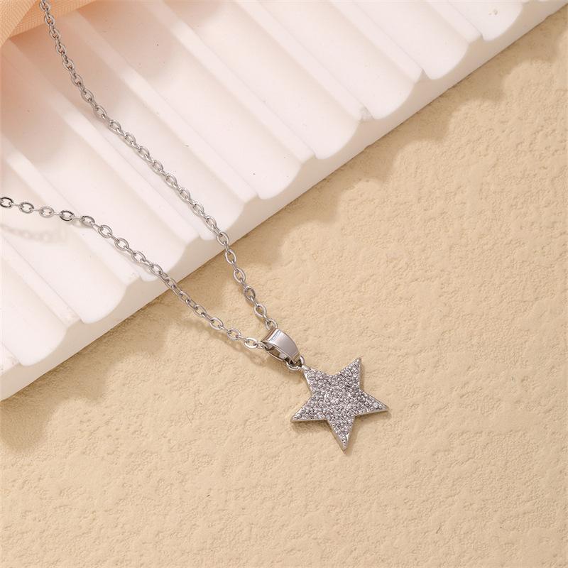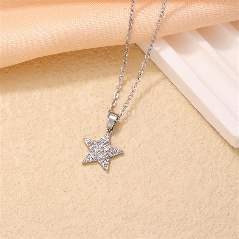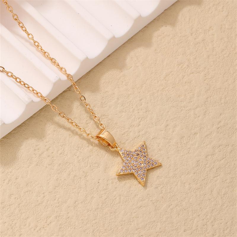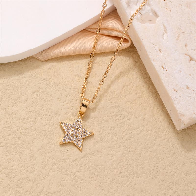 Collar de estrella de cinco puntas transfronterizo europeo y americano para mujer, colgante de moda de estrella, cadena de suéter simple de alta calidad, joyería de Yiwu para otoño e invierno