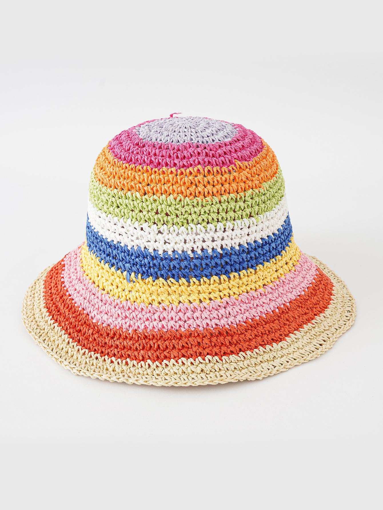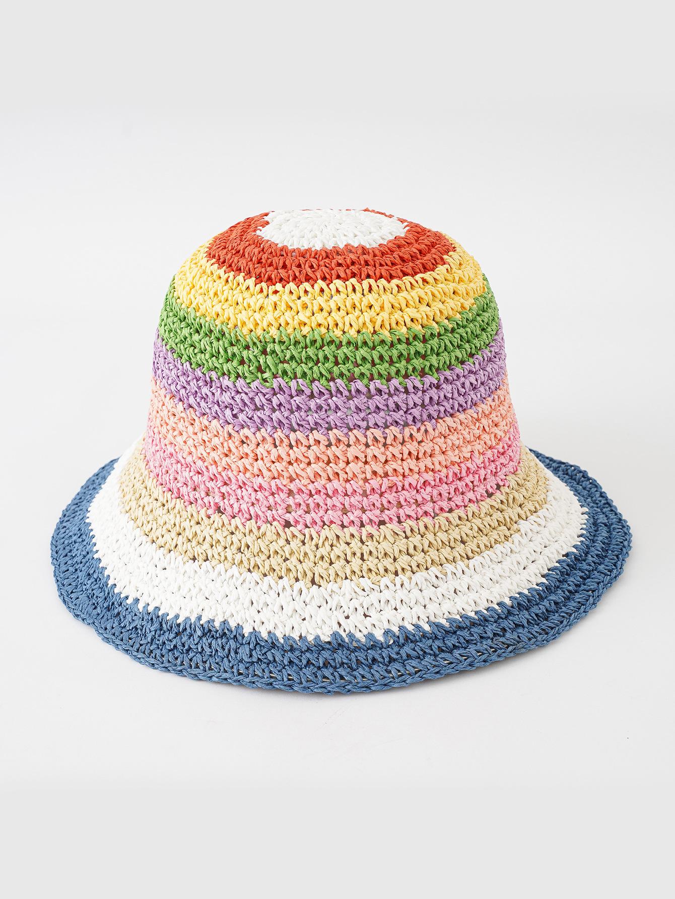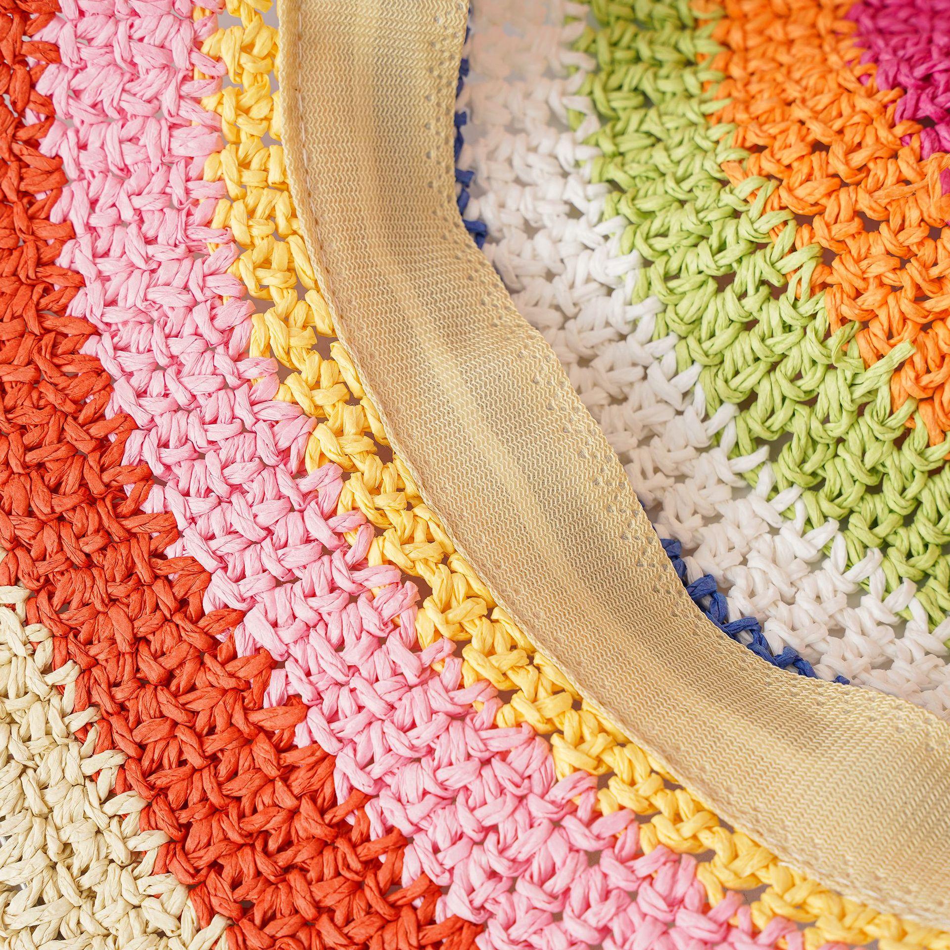 Sombrero de Pescador Tejido Fresco Pequeño Sombrero de Sol de Verano Arcoíris Sombrero de Playa para la Orilla del Mar