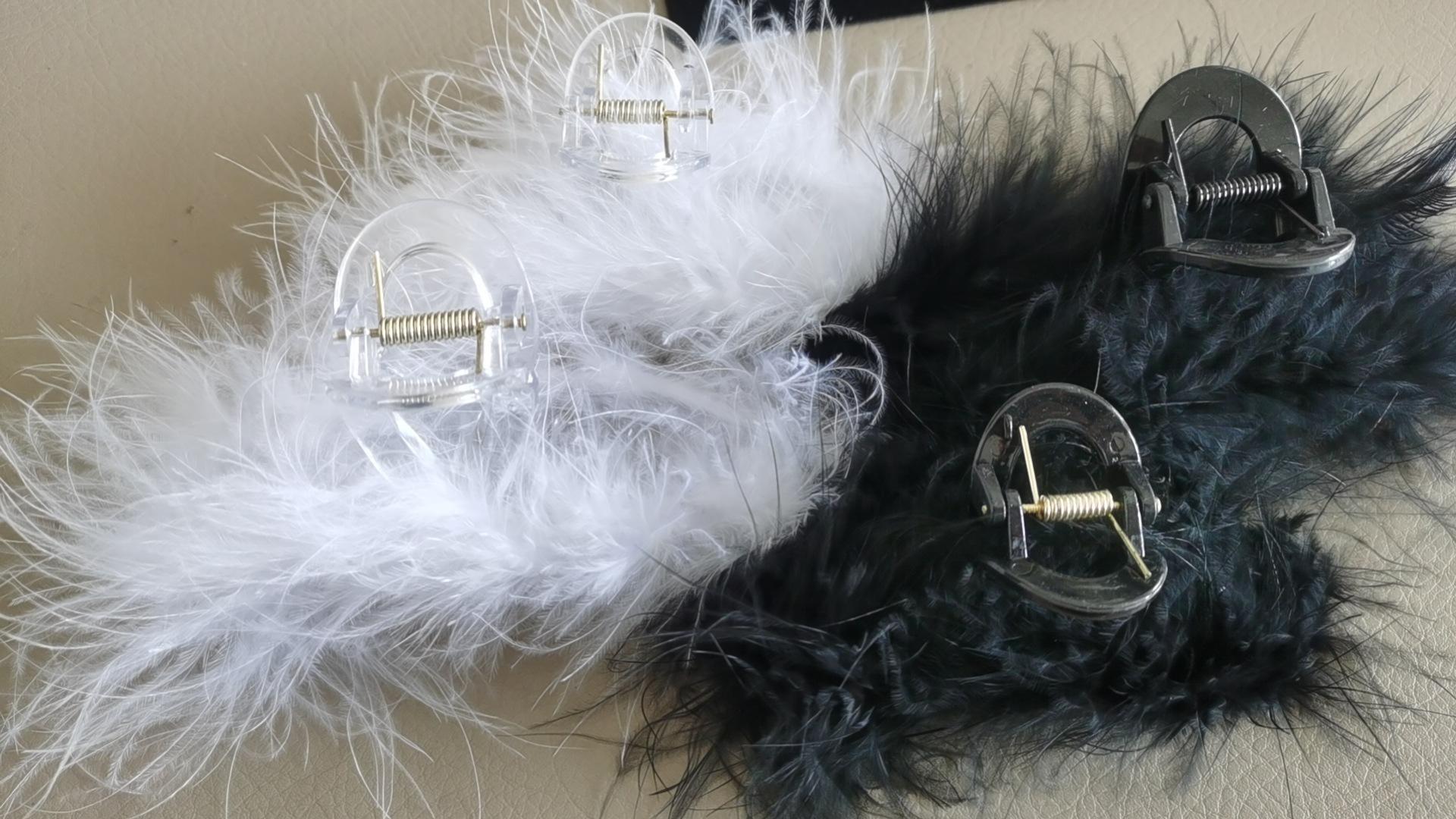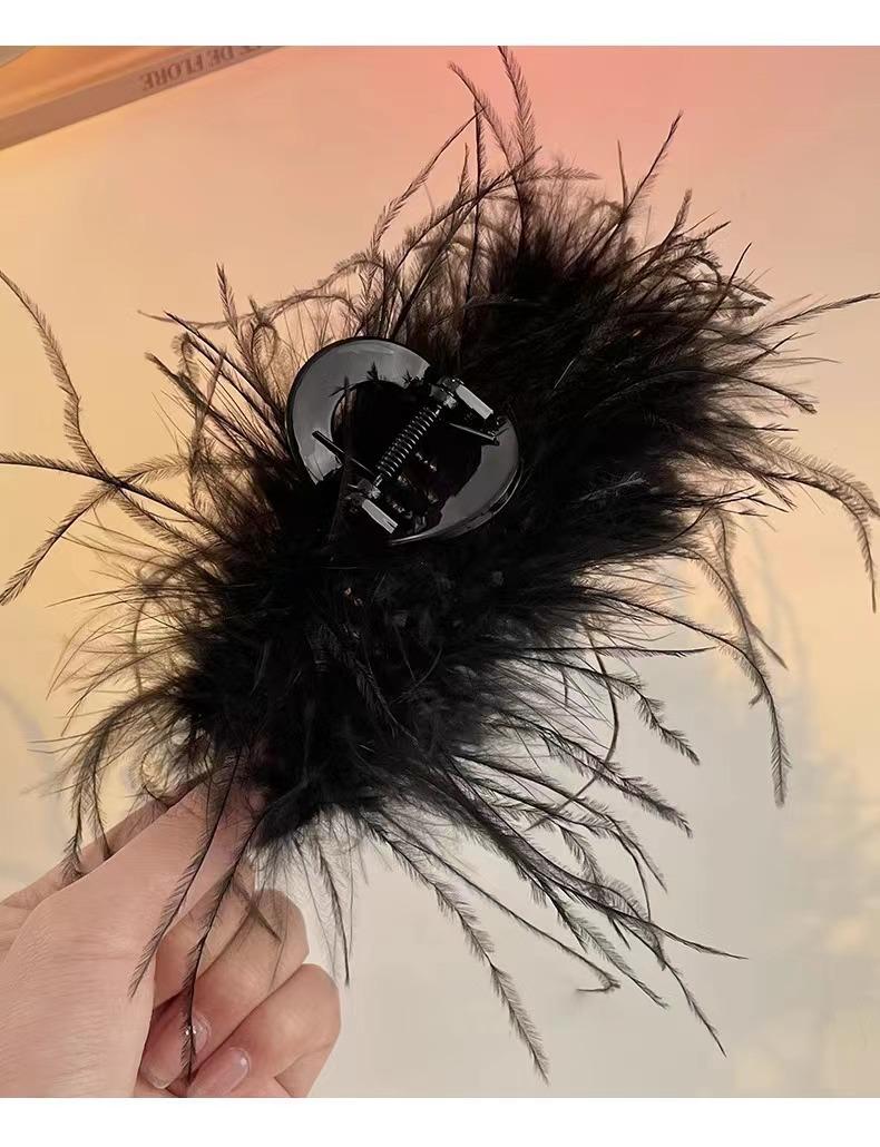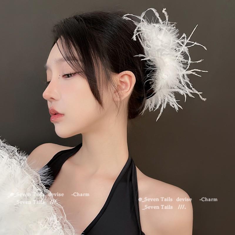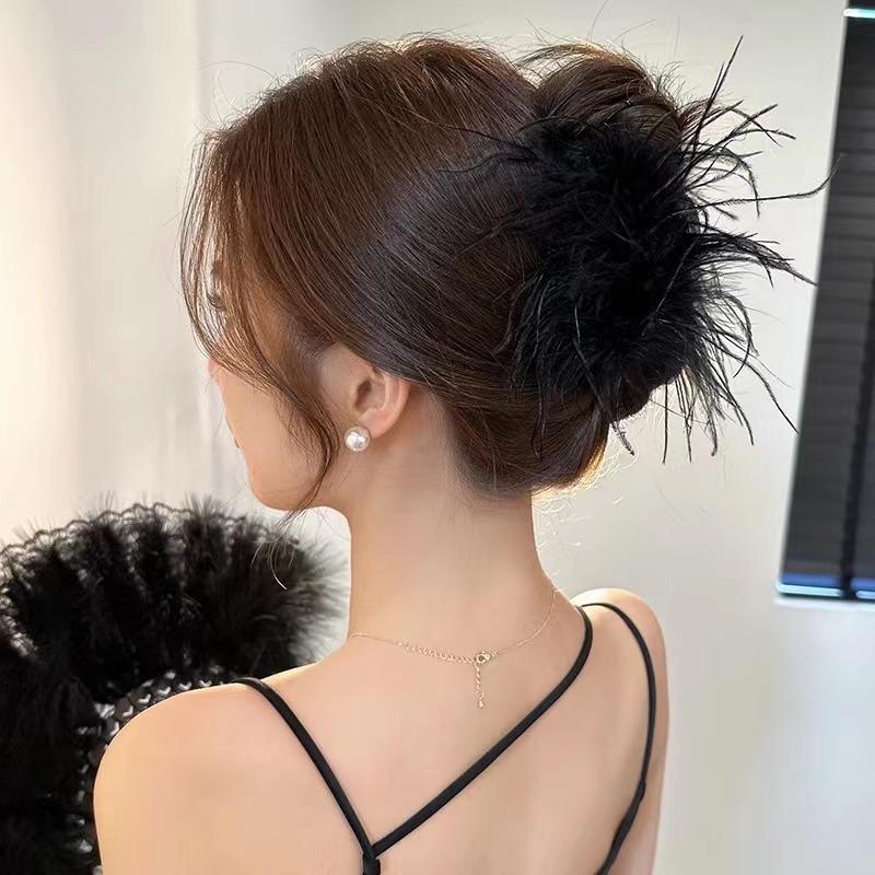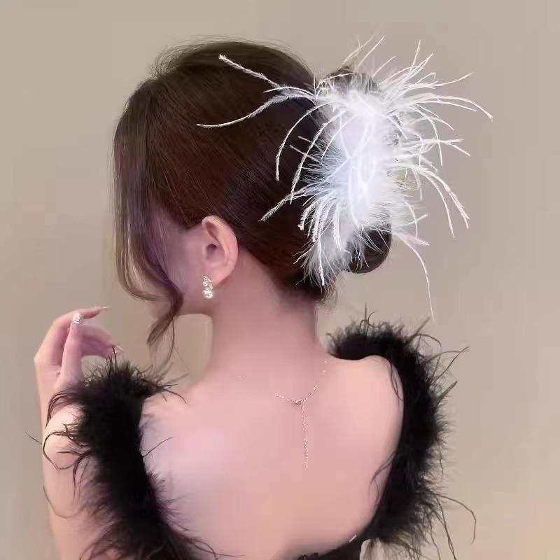 Horquilla de plumas de avestruz estilo Pure Wish, recogido para la parte posterior de la cabeza, tocado con pinza de tiburón, accesorios para el cabello de alta calidad de Super Fairy