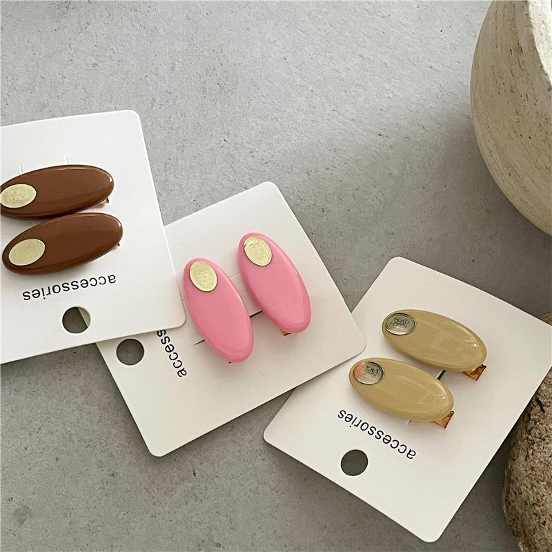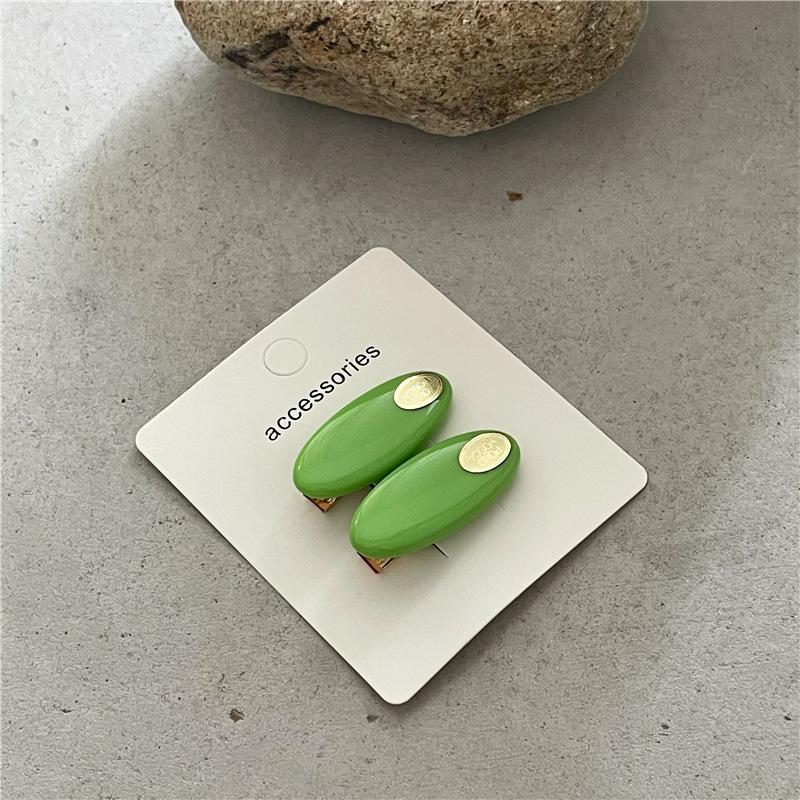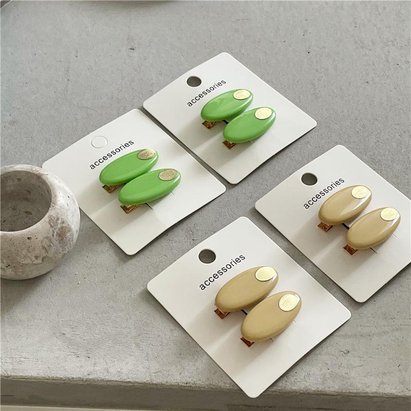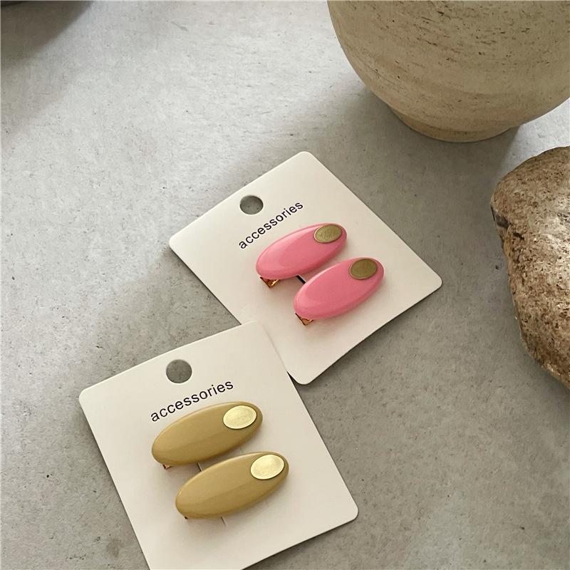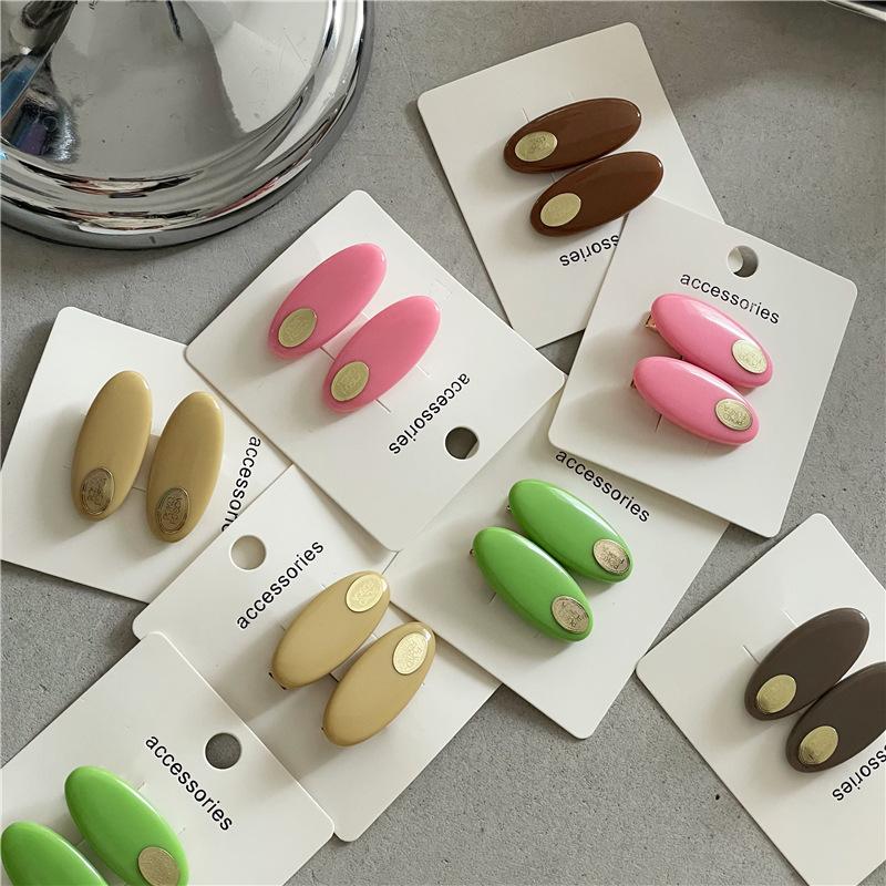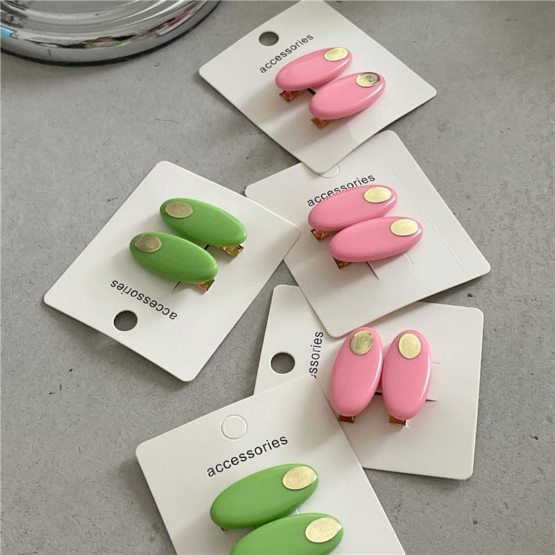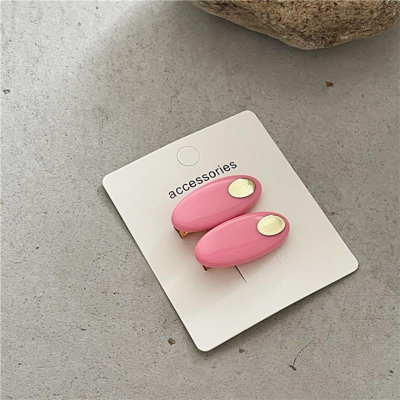 Par de horquillas de plástico ovaladas de colores frescos y pequeños a la moda con clip de metal dorado y pinza para el flequillo con forma de pico de pato