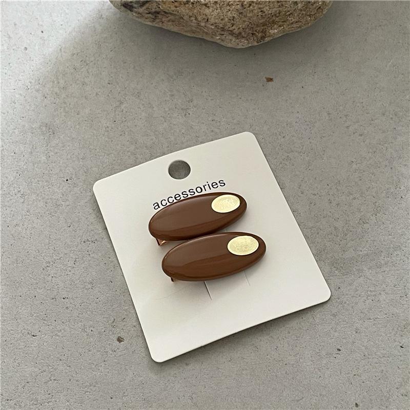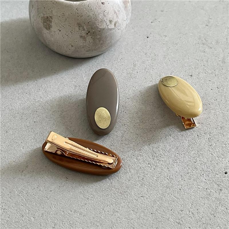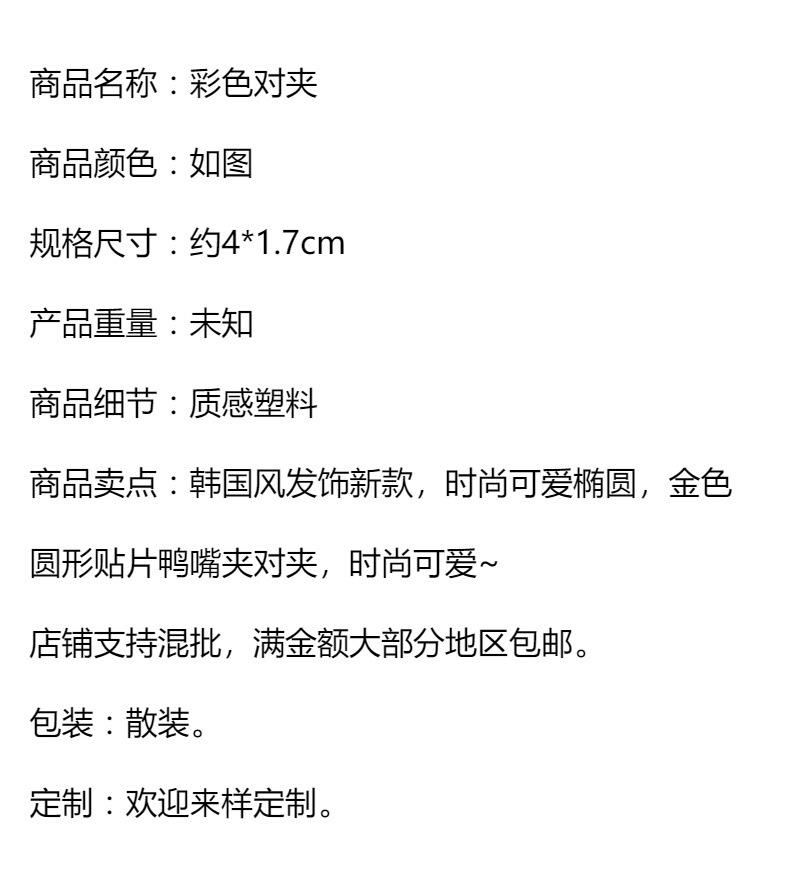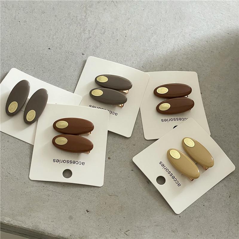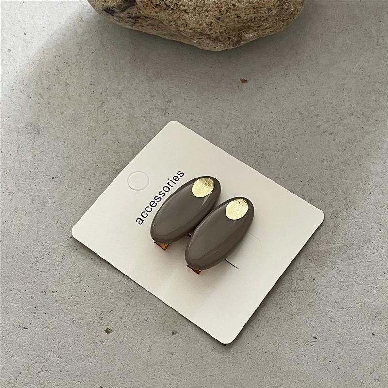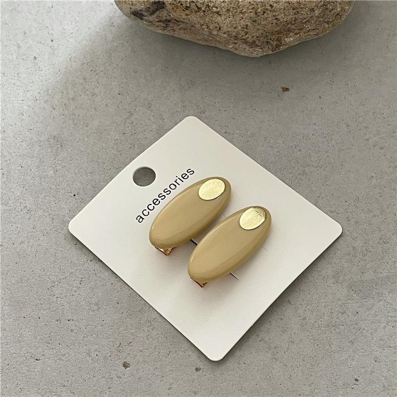 Par de horquillas de plástico ovaladas de colores frescos y pequeños a la moda con clip de metal dorado y pinza para el flequillo con forma de pico de pato