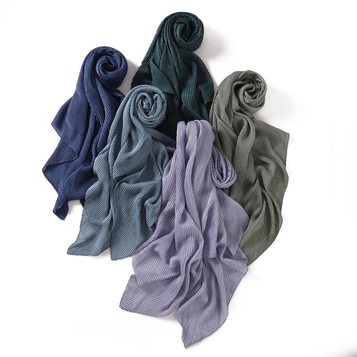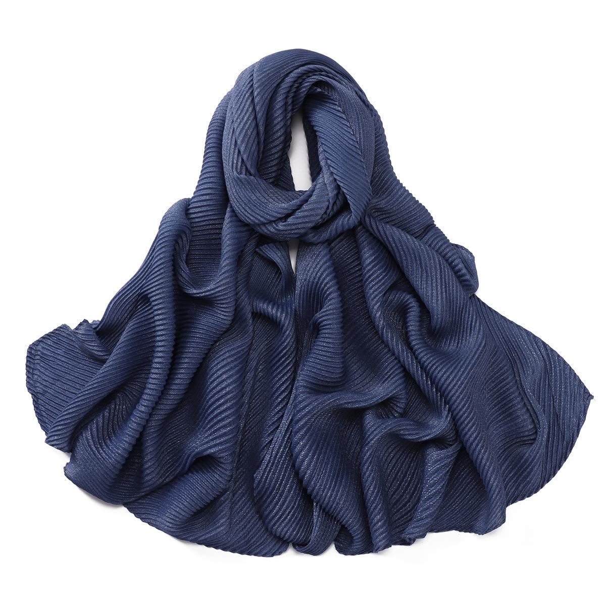 Nueva bufanda larga tipo turbante de seda plateada arrugada