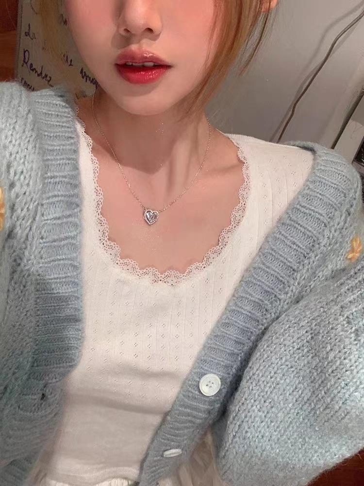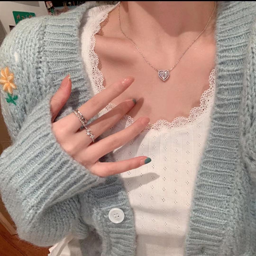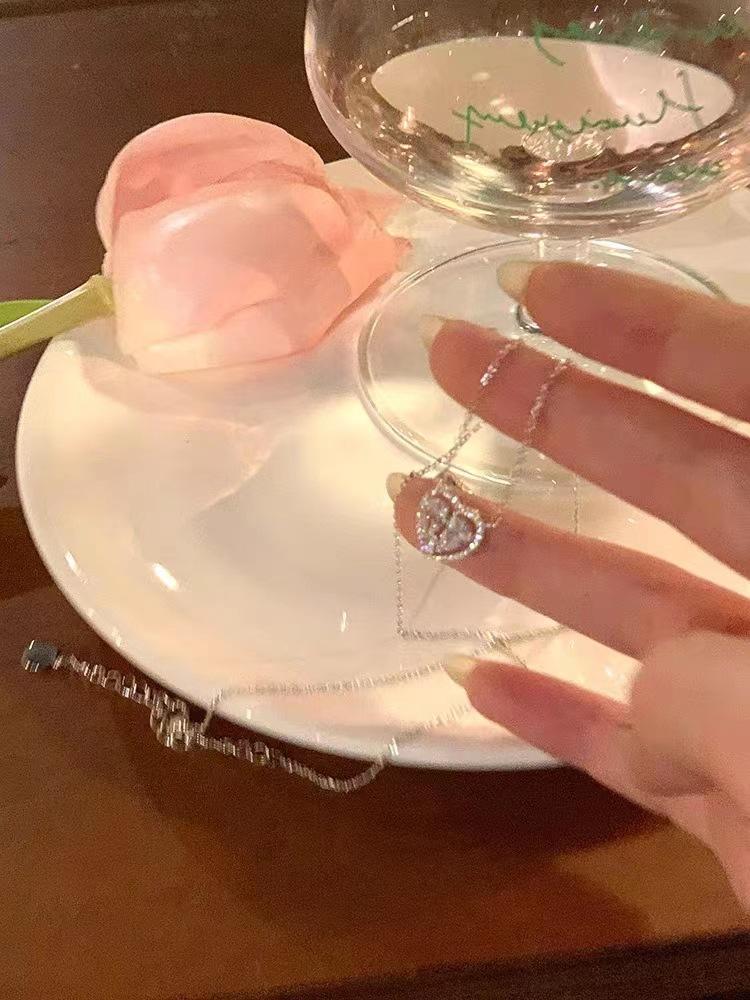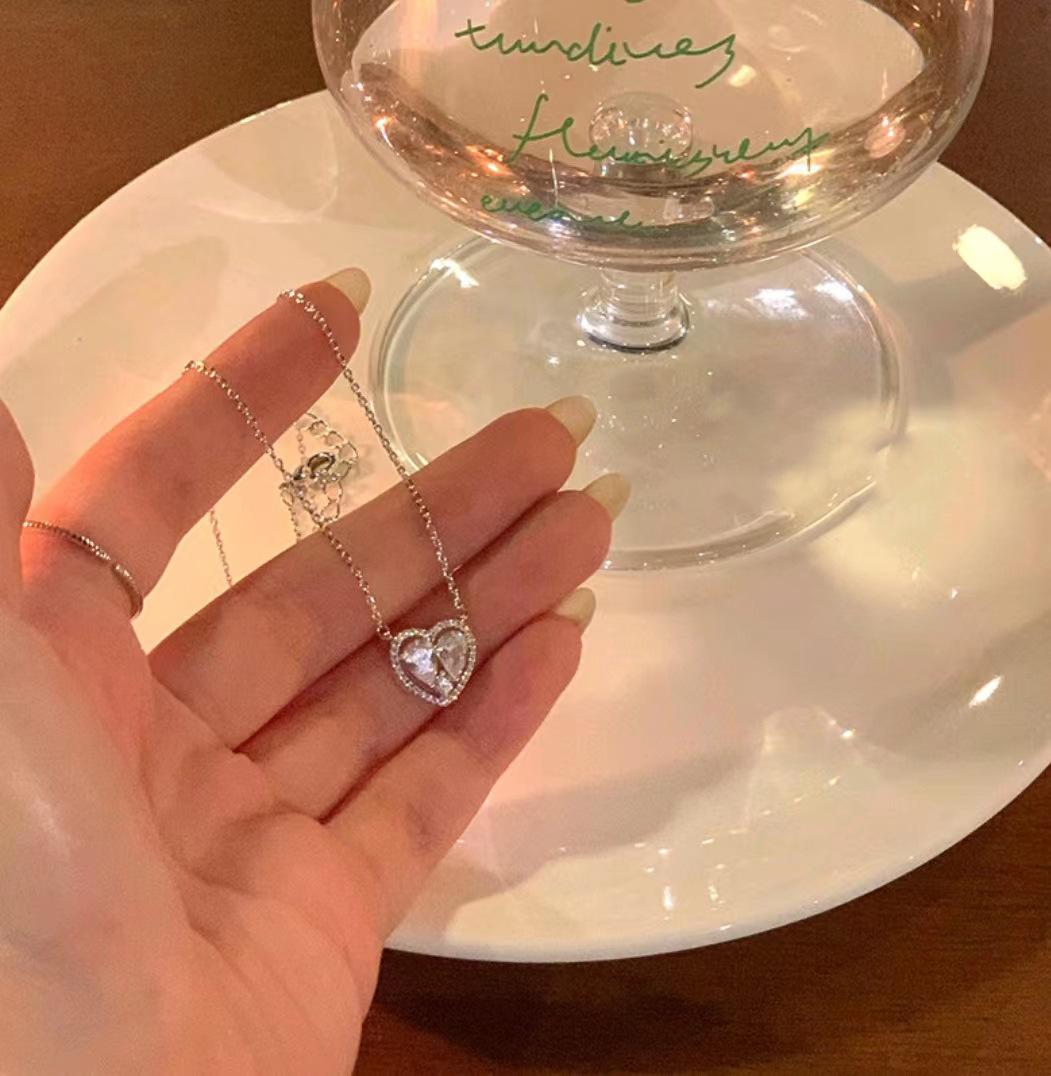 Collar Amor de Piedra Blanca Hueca para Mujer Diseño de Nicho con Sentido de Alta Gama y Lujo Ligero Cadena para Clavícula Nuevos Accesorios 2023