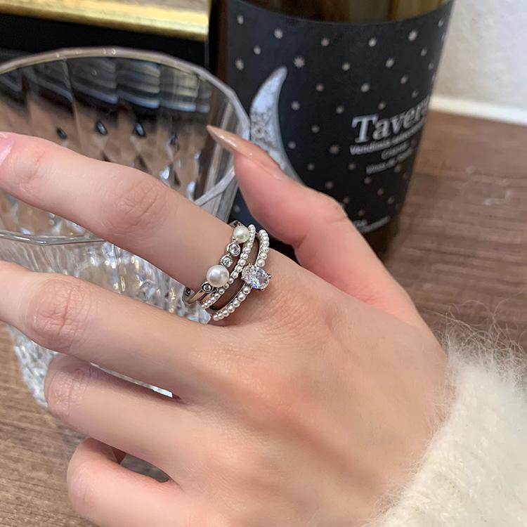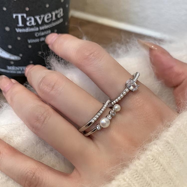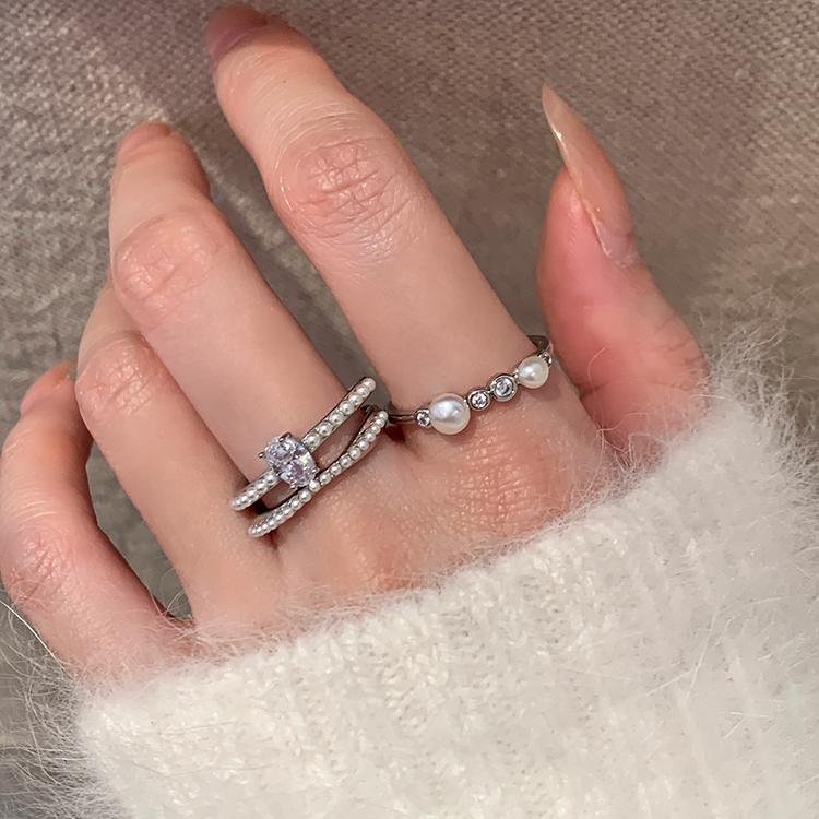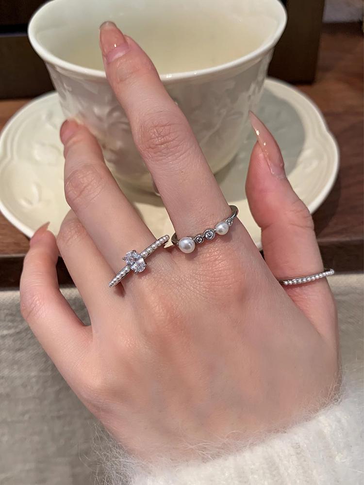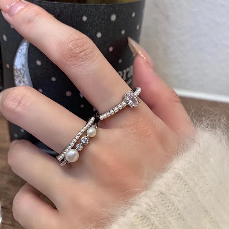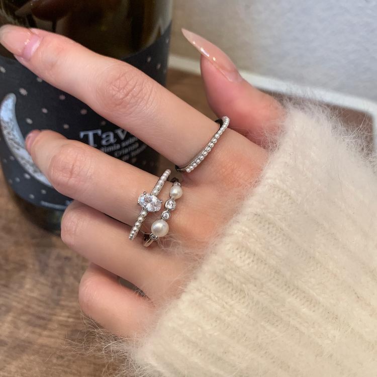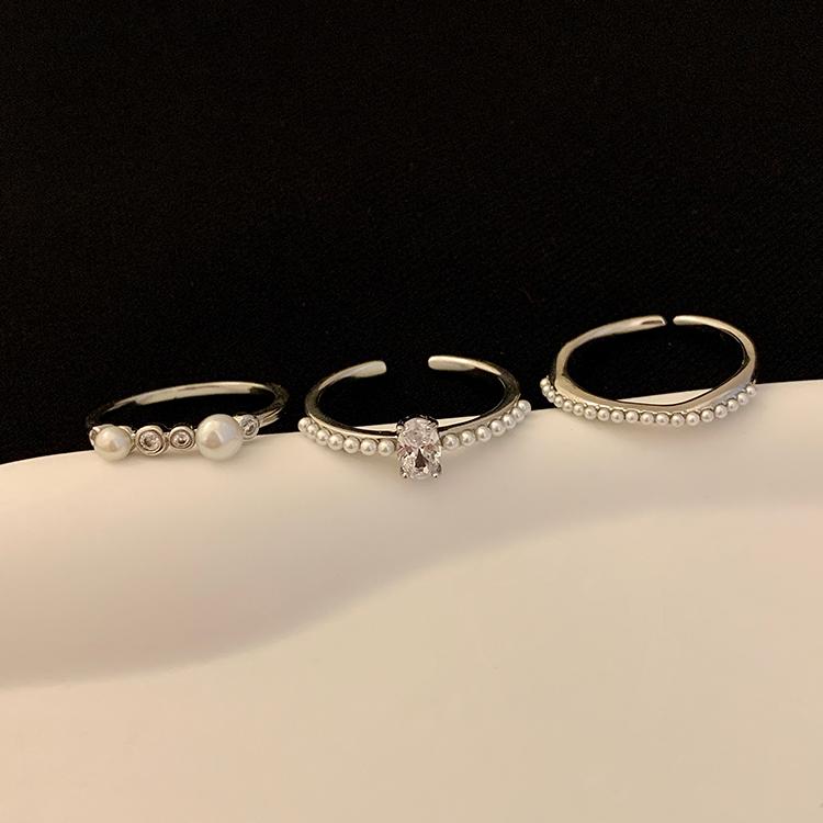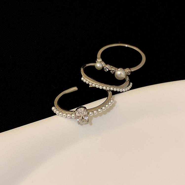 Moda coreana Anillo de diamantes de imitación de perlas para mujer Diseño de nicho Sentido de la moda Anillo de dedo de comida Juego de tres piezas 2023 Nuevo