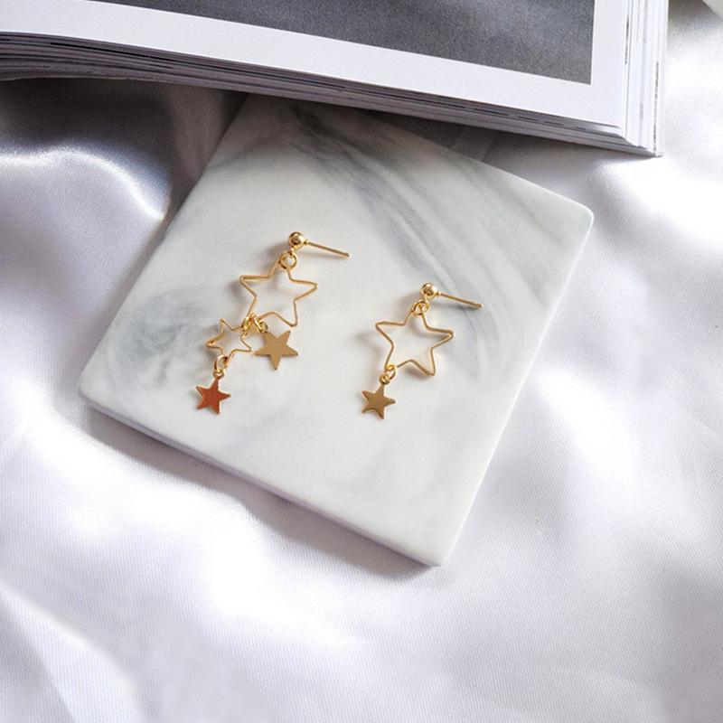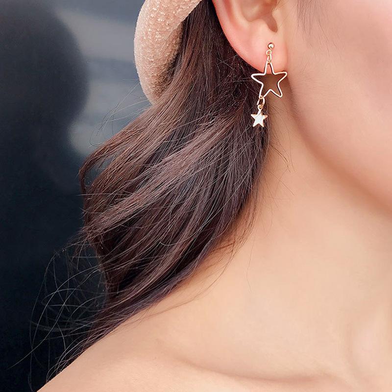 Pendientes nuevos transfronterizos de Europa y Estados Unidos, pendientes de estrella de cinco puntas de aleación de moda, pendientes de estrella de metal coreano, pendientes al por mayor
