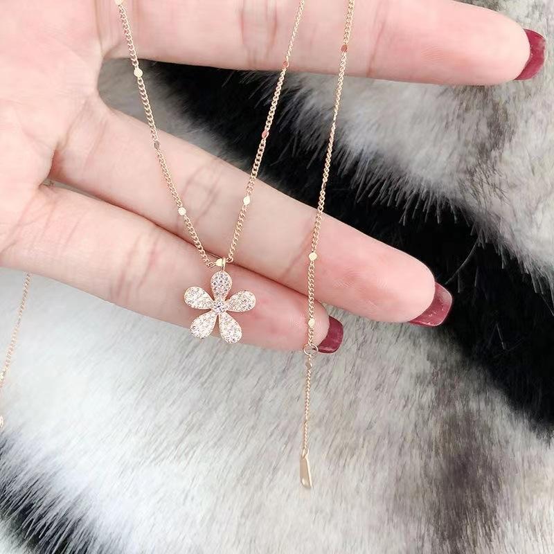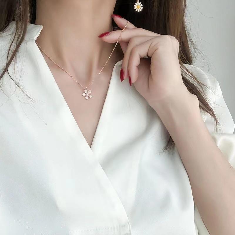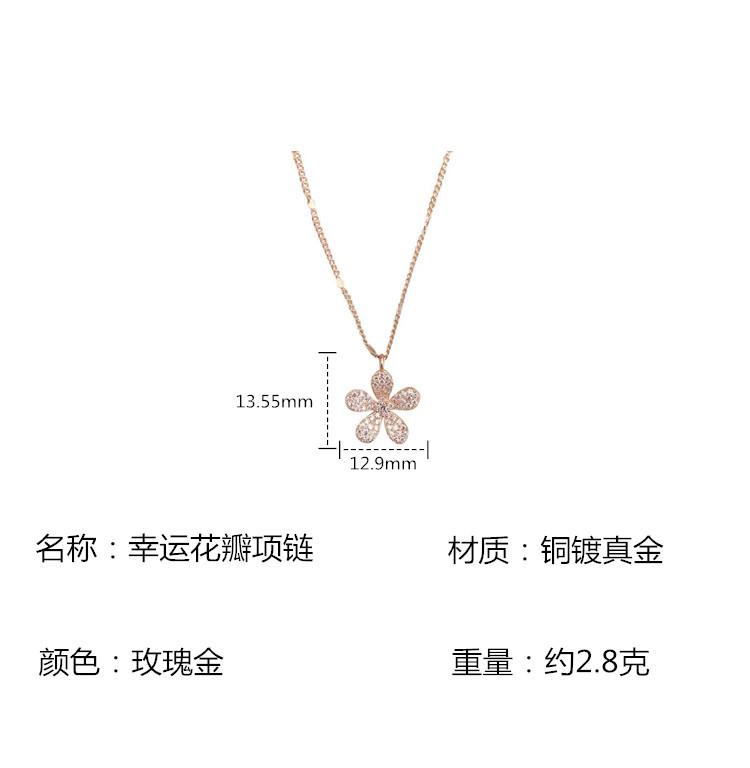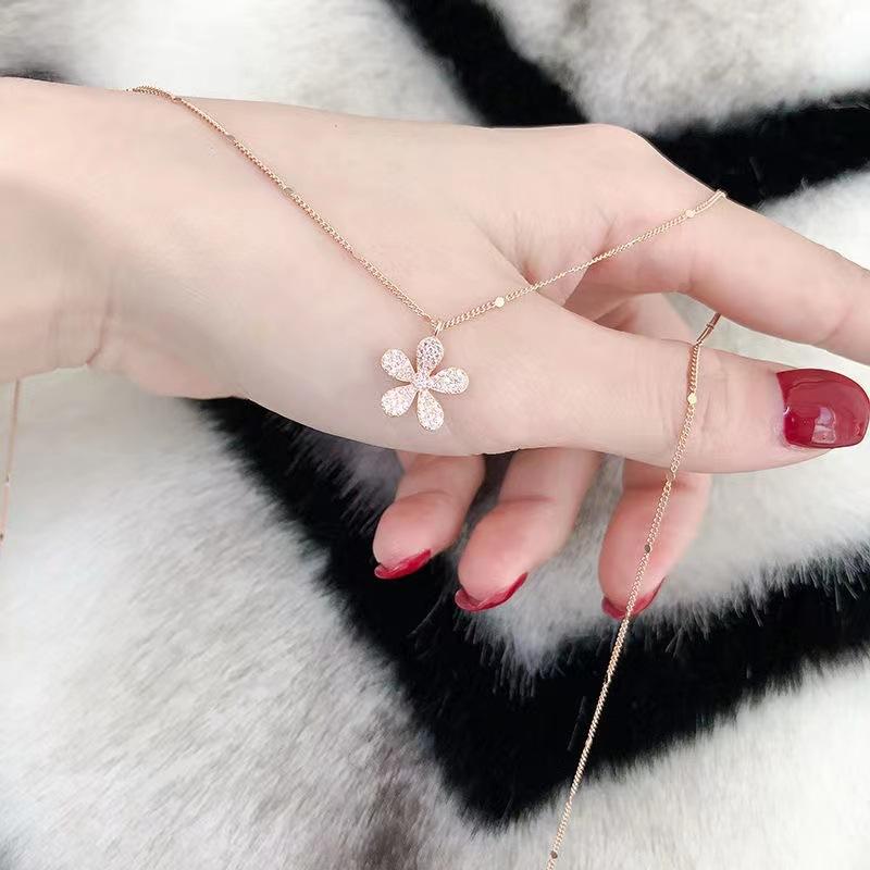 Collar de pétalos de la suerte de lujo y ligero de moda para mujer, diseño de nicho, elegante cadena de clavícula, colgante sencillo de cinco flores para celebridades de Internet.