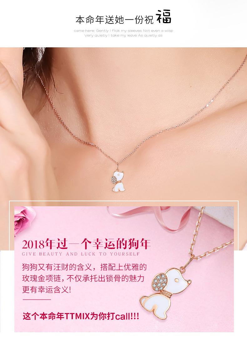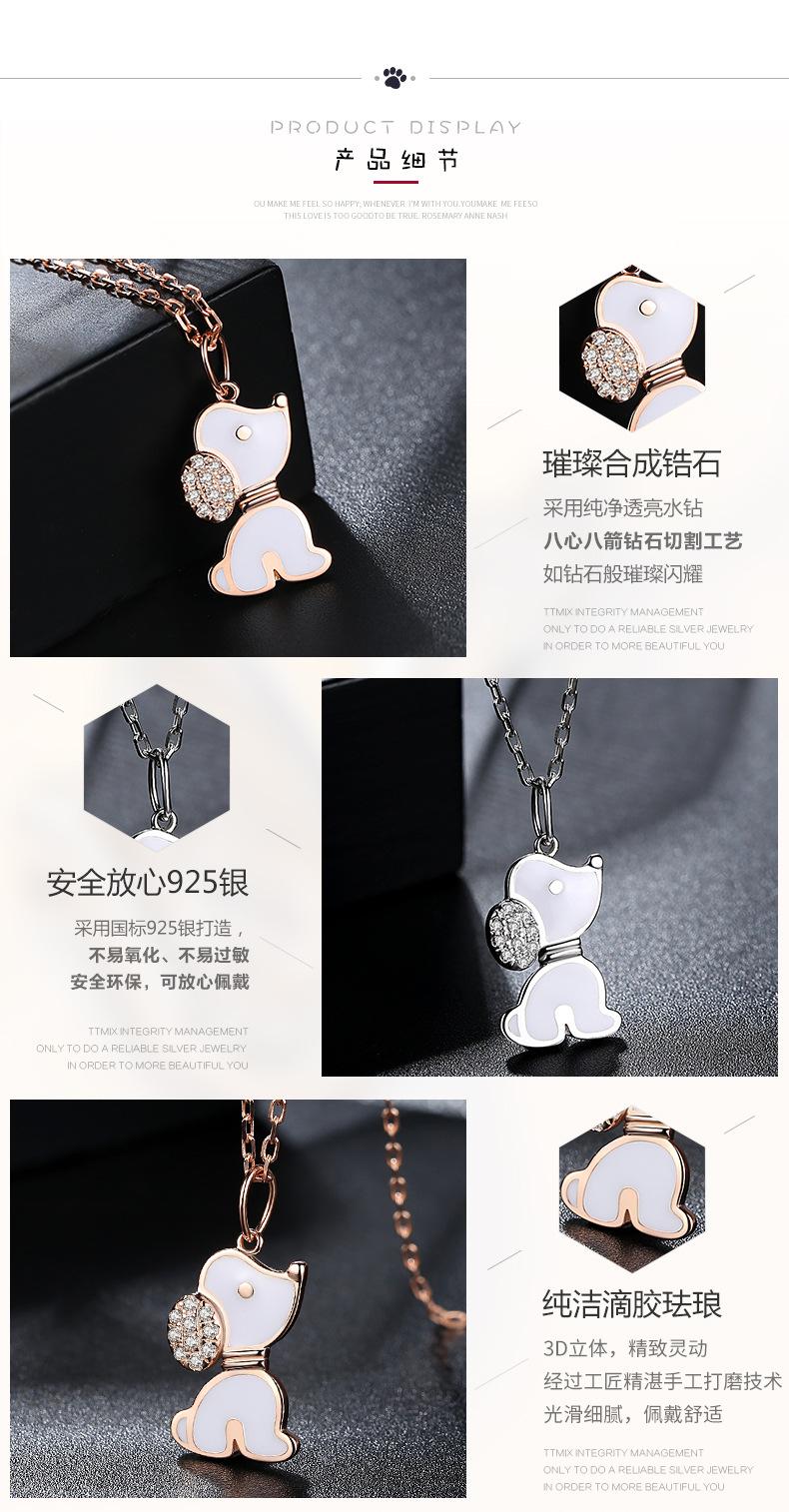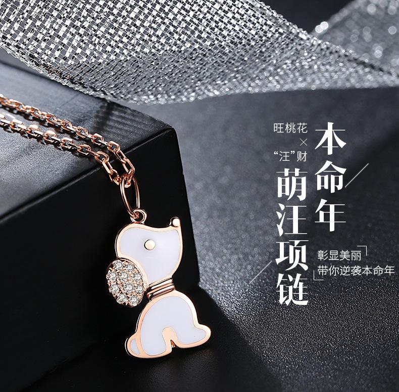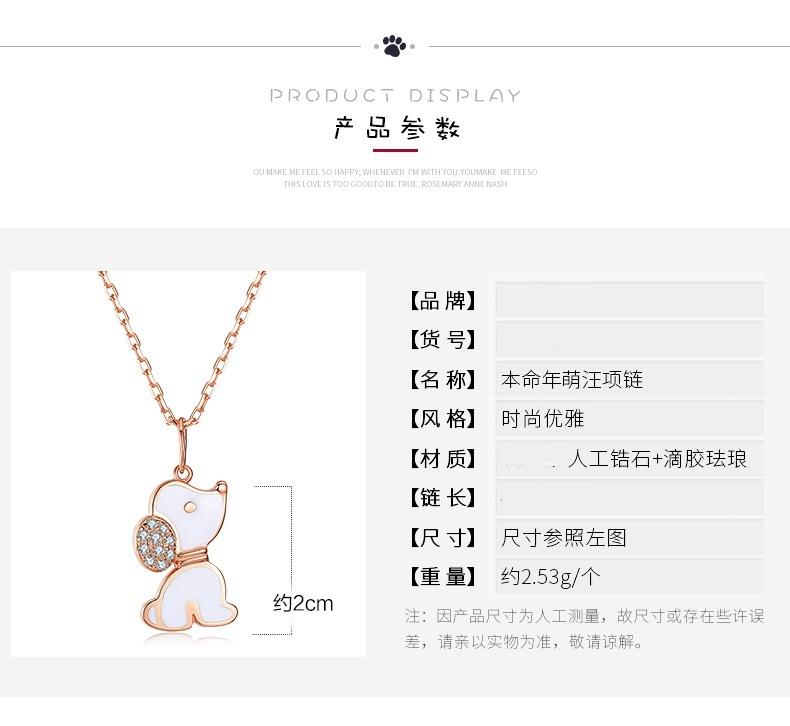 Collar con colgante de perro del año del nuevo nacimiento de Zhen Rong con microincrustaciones de circonitas esmaltadas y pegamento de color, una generación de cabello