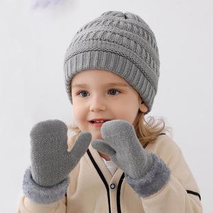 Nuevo conjunto de gorro y guantes para niños de Amazon, gorro de punto para niños y niñas, más bolsa de guantes de punto de terciopelo, juego de 2 piezas