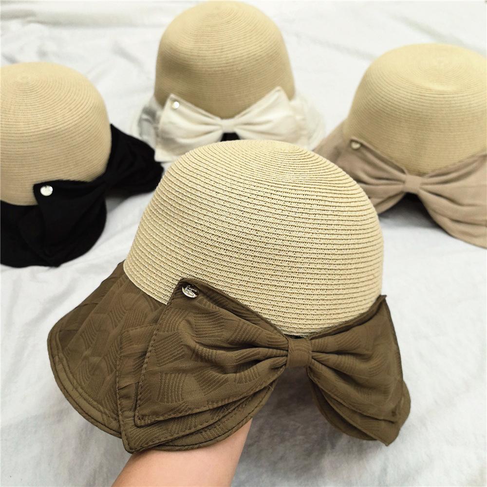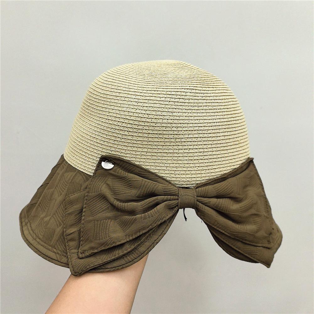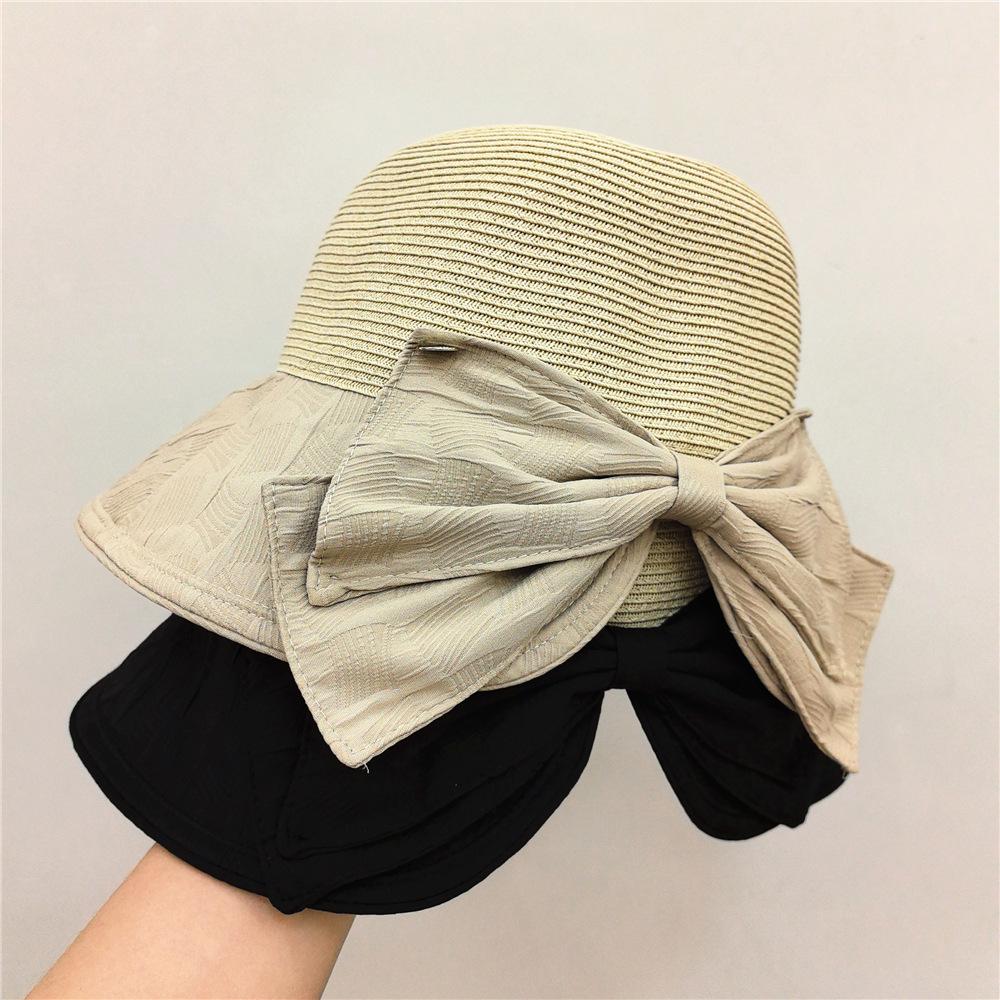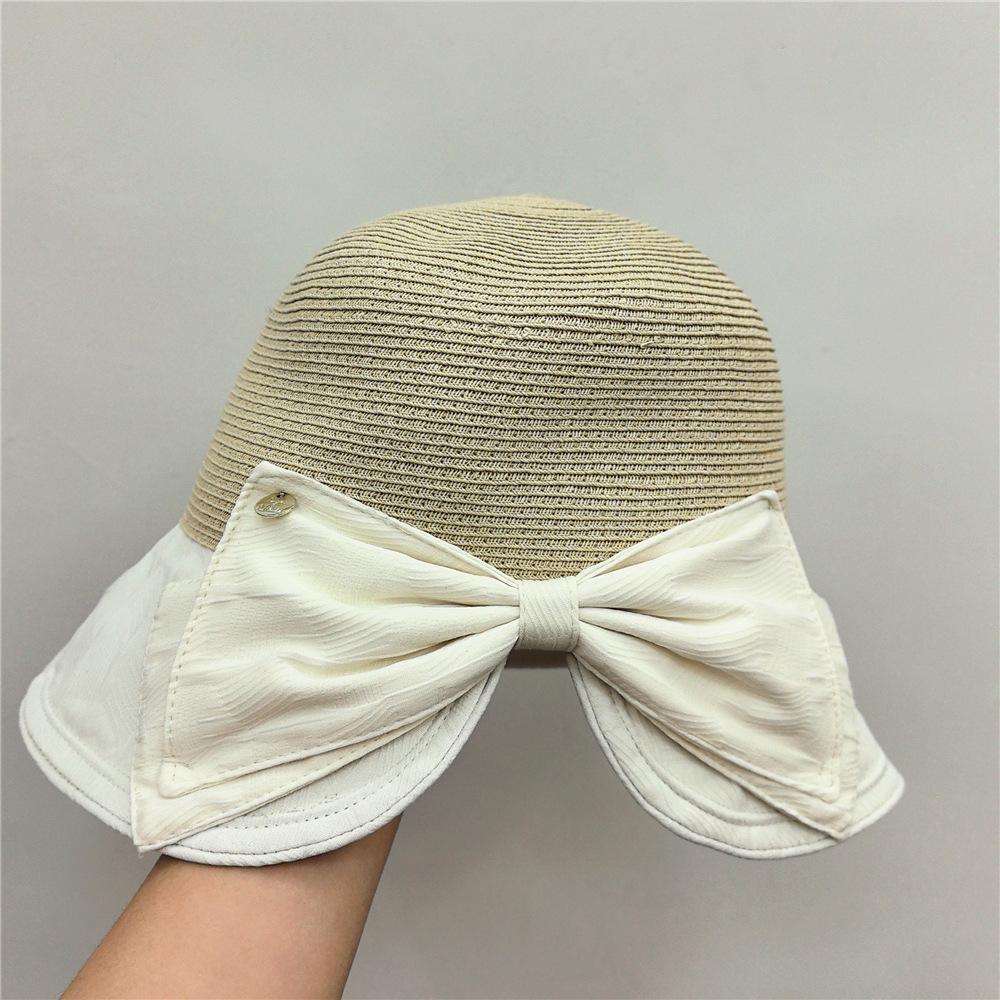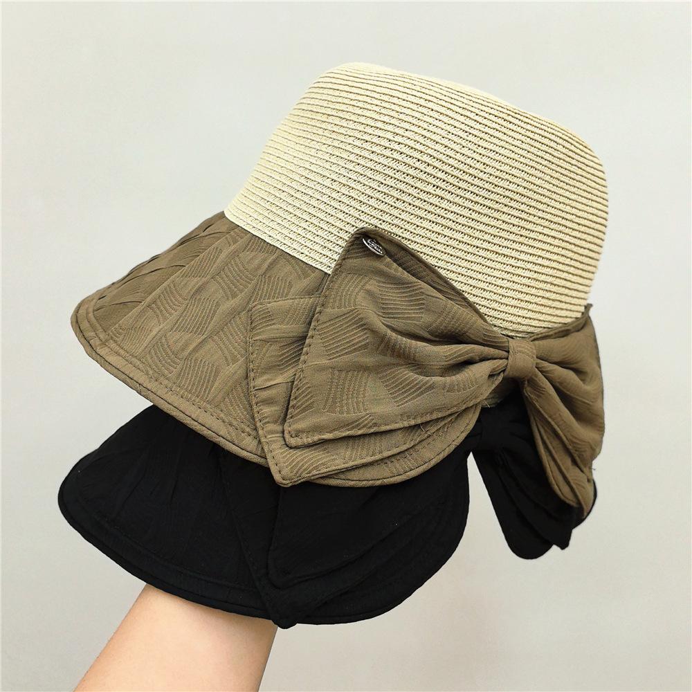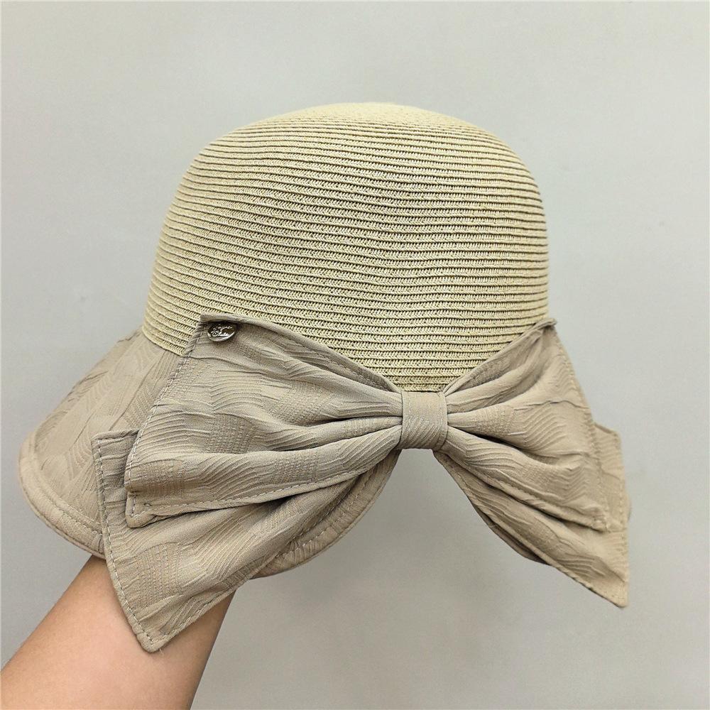 Elegante sombrero de pescador con lazo, sombrero de paja para mujer, sombrero de protección solar, sombrero de playa para viajes de verano y vacaciones en la playa.