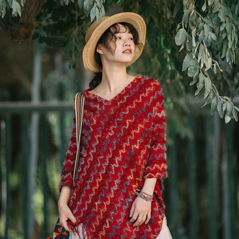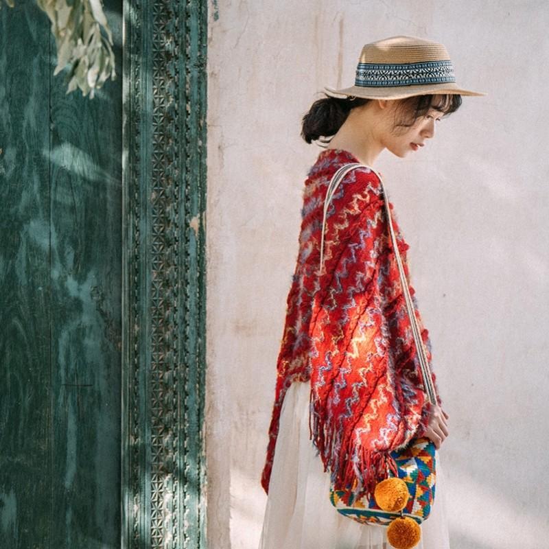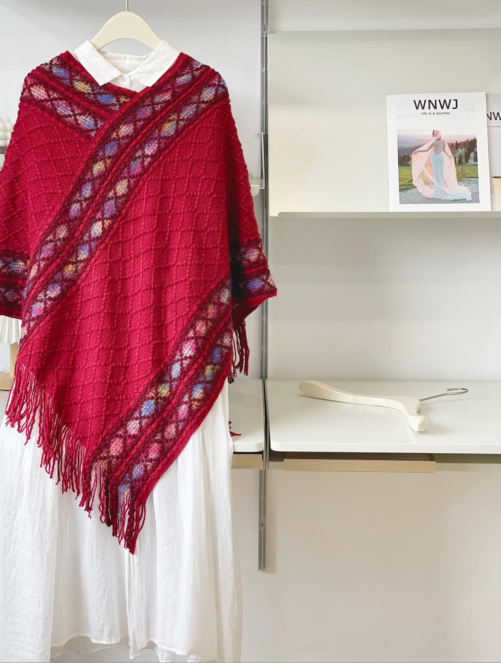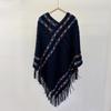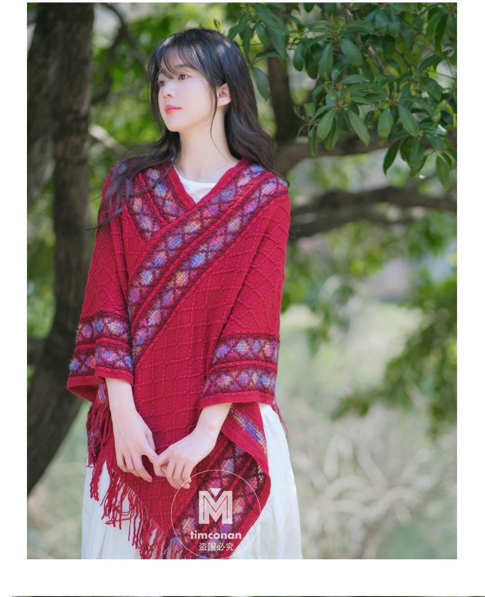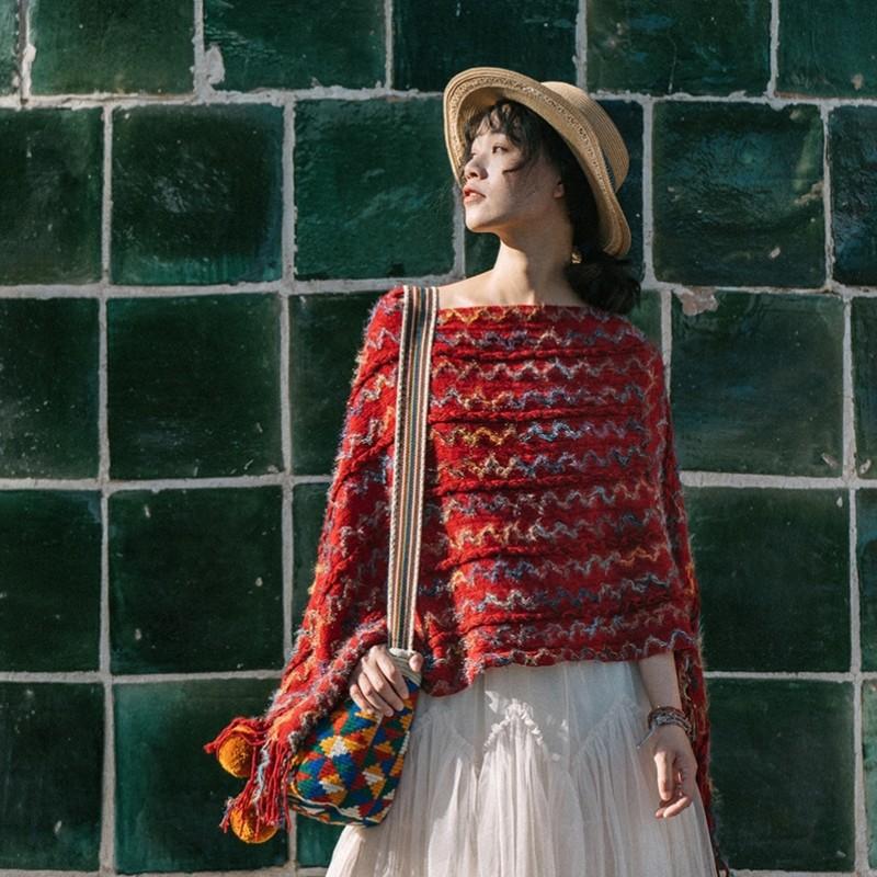 Chal Étnico Retro Ropa Exterior Suéter de Punto Capa para Mujer Ropa de Viaje Yunnan Capa Triangular Cálida con Borlas