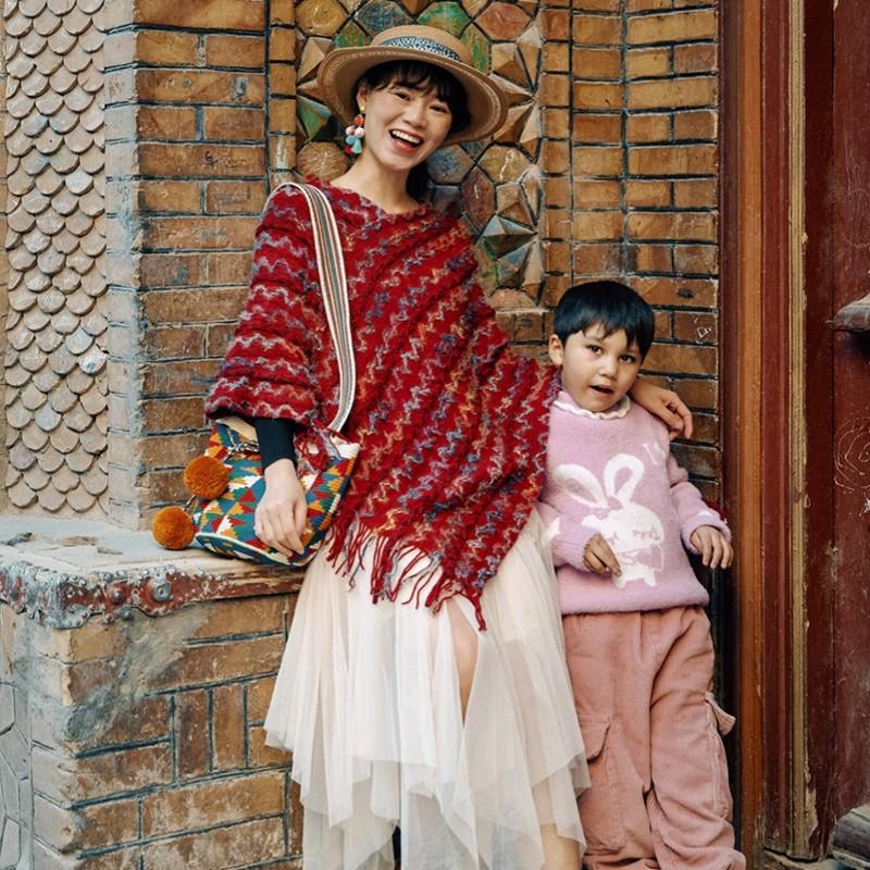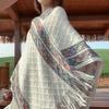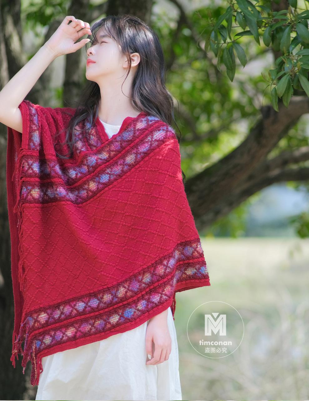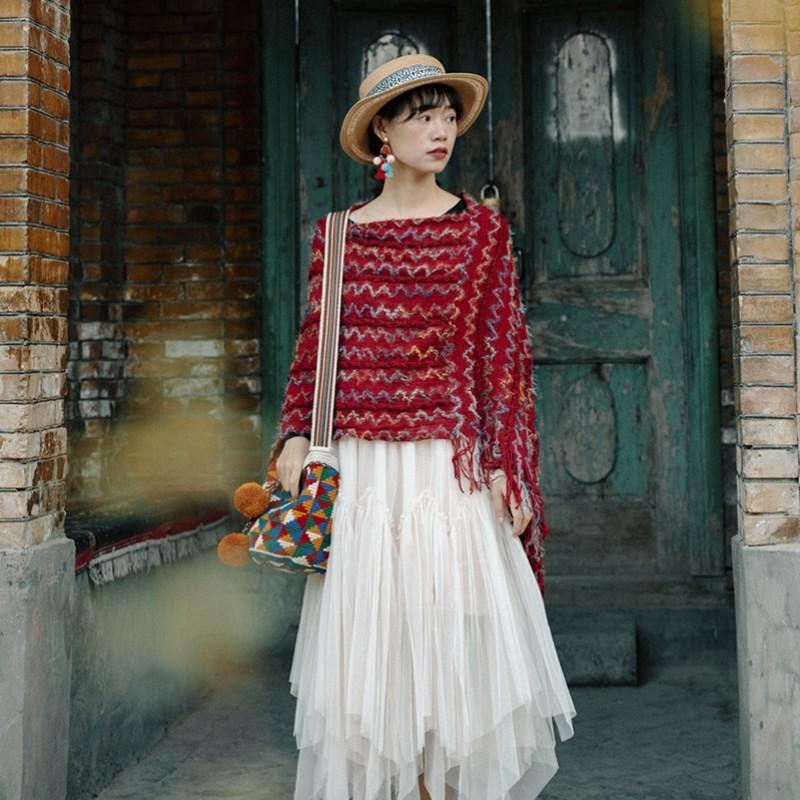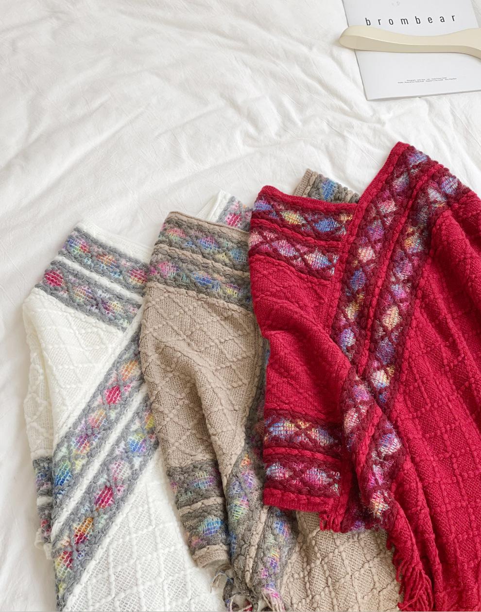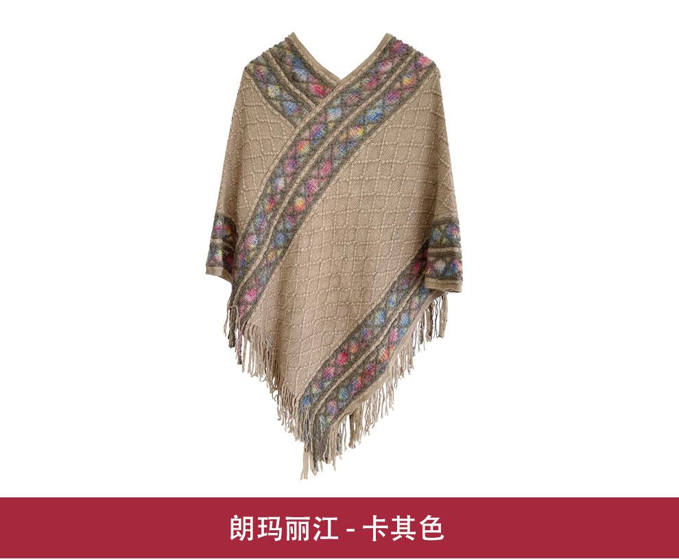 Chal Étnico Retro Ropa Exterior Suéter de Punto Capa para Mujer Ropa de Viaje Yunnan Capa Triangular Cálida con Borlas