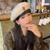 Boina retro negra para mujer, boina japonesa de otoño e invierno, sombrero de pintor plano con cara roja y red, tendencia