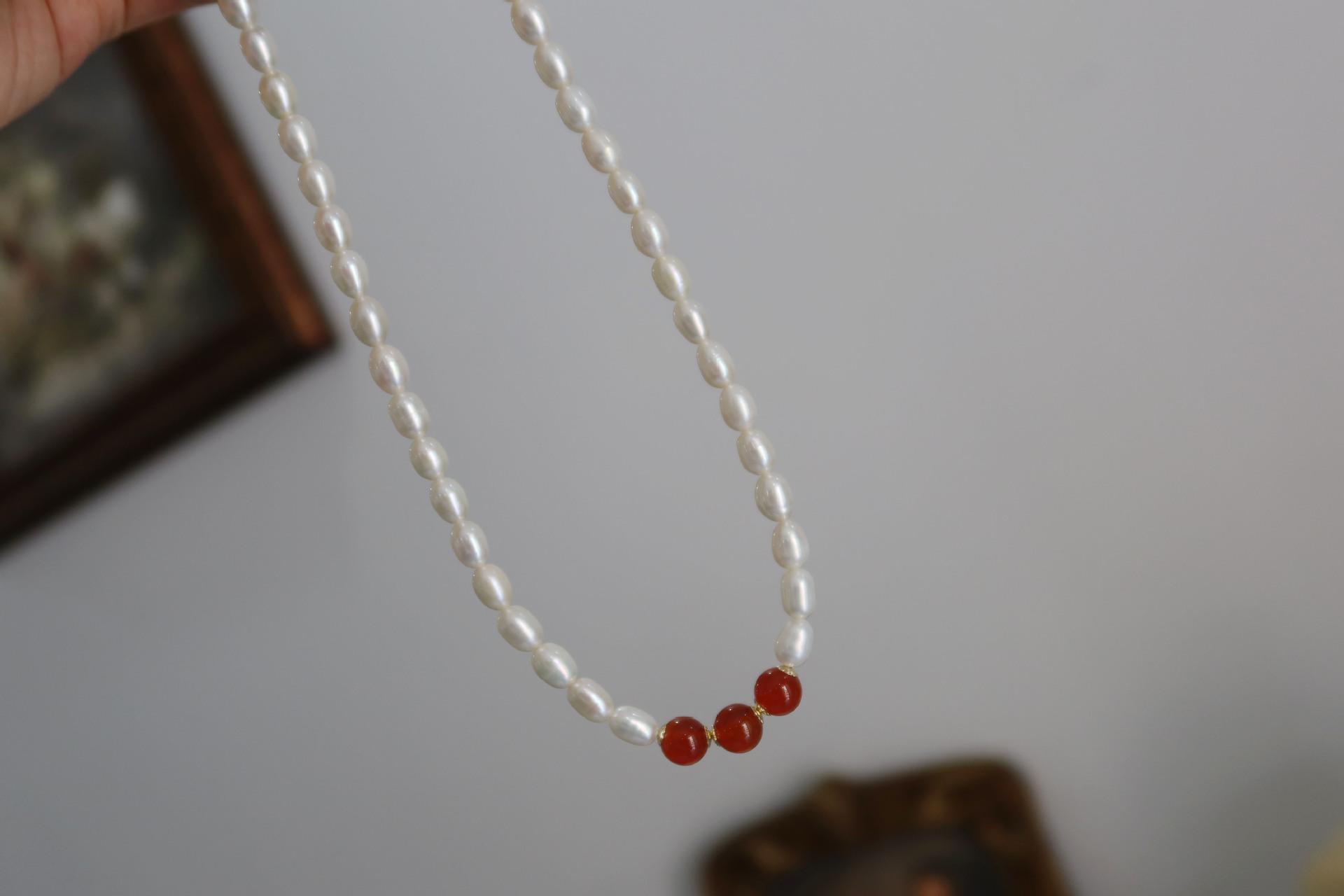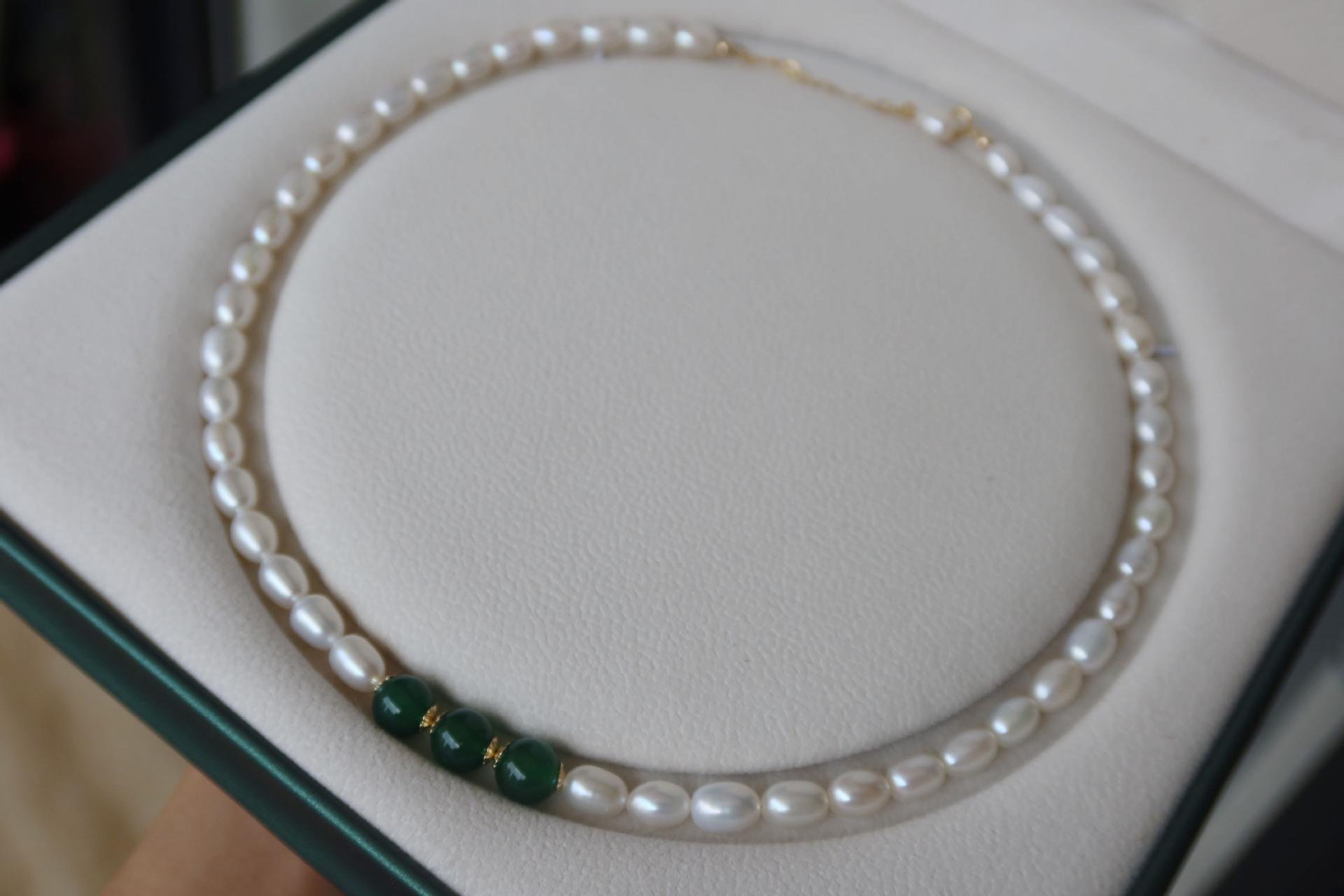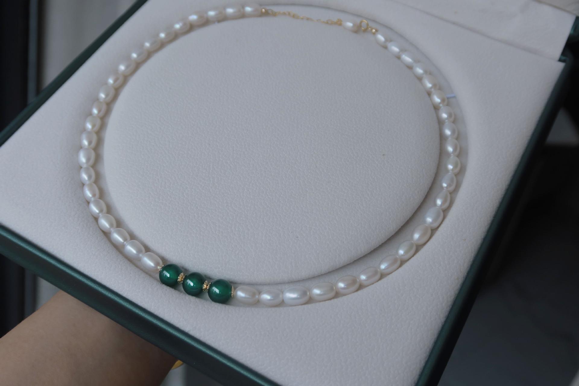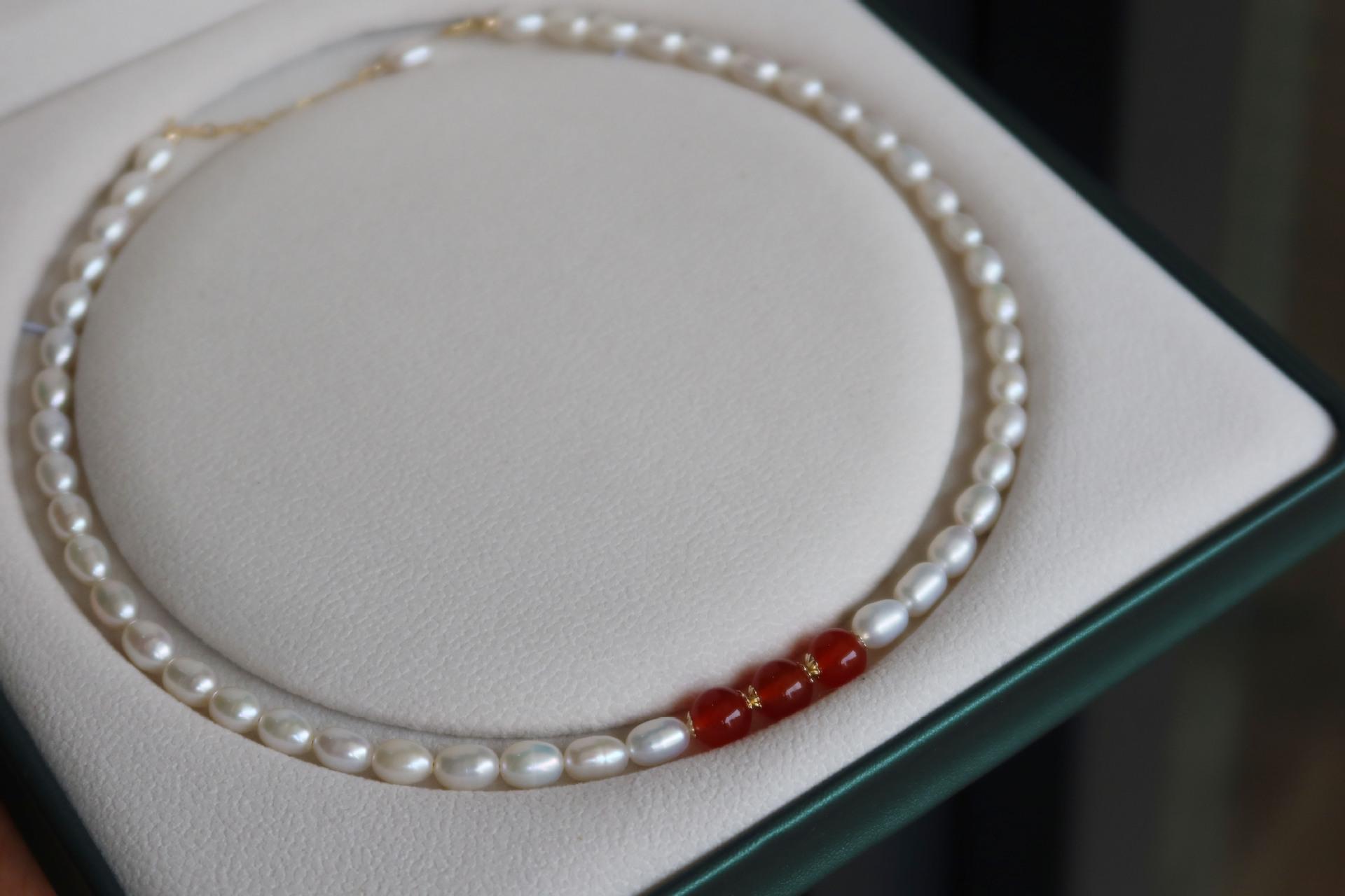 Las perlas de arroz son perlas naturales de unos 6-7 mm.
