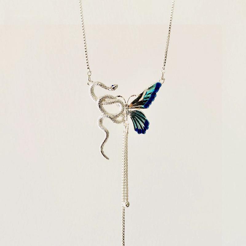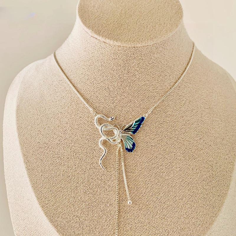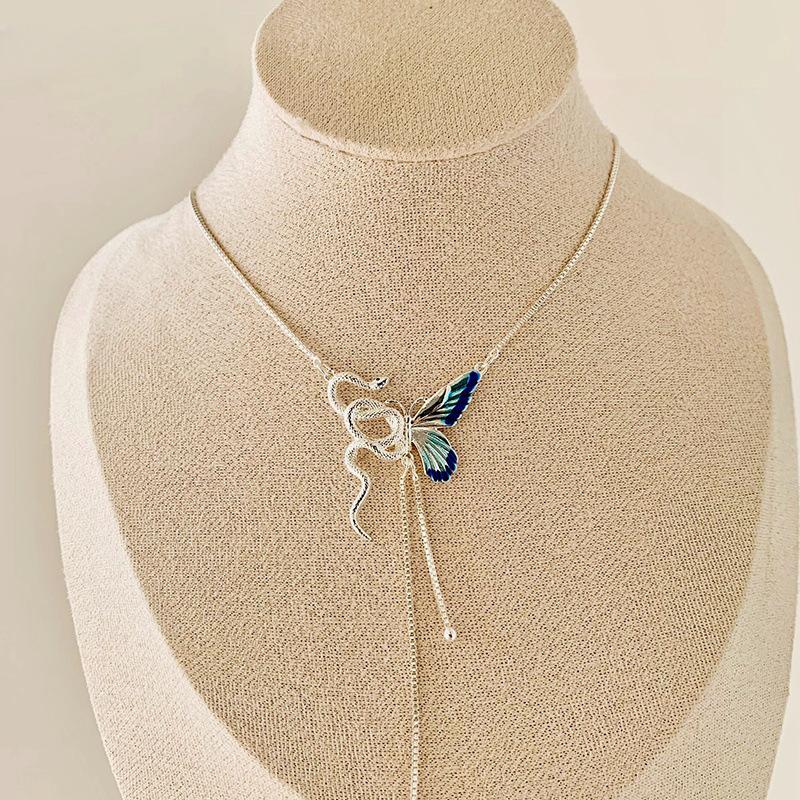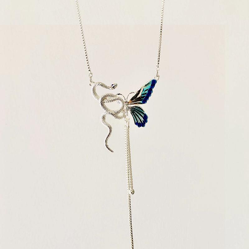 Collar único de borla de serpiente espíritu y mariposa de personalidad para mujer, cadena de clavícula de moda de alta gama, temperamento versátil, cadena para suéter