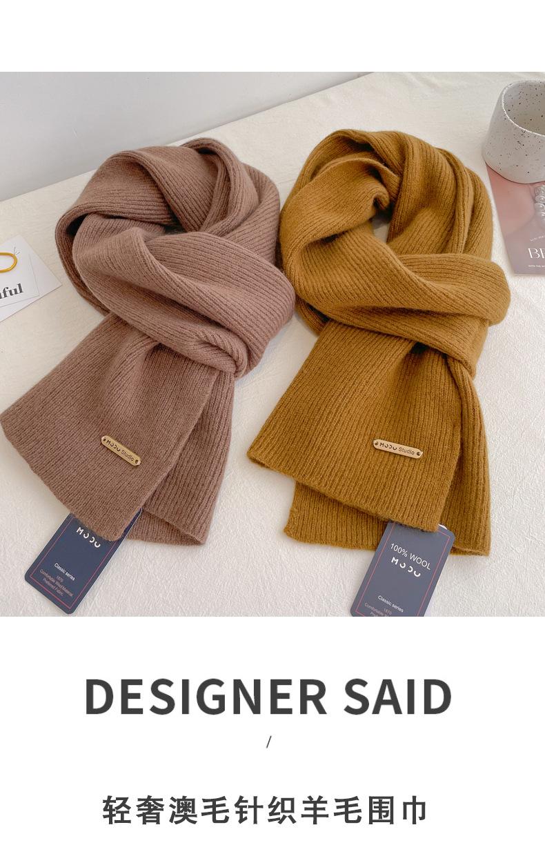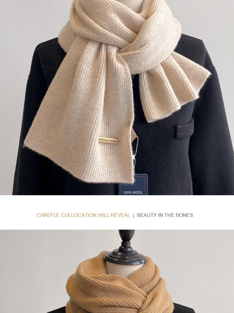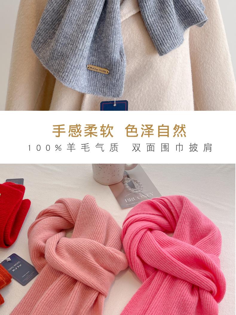 Bufanda de punto 100% lana pura para mujer, bufanda de invierno para parejas, simple, combinable, de color sólido, gruesa, chal de alta gama para hombre.