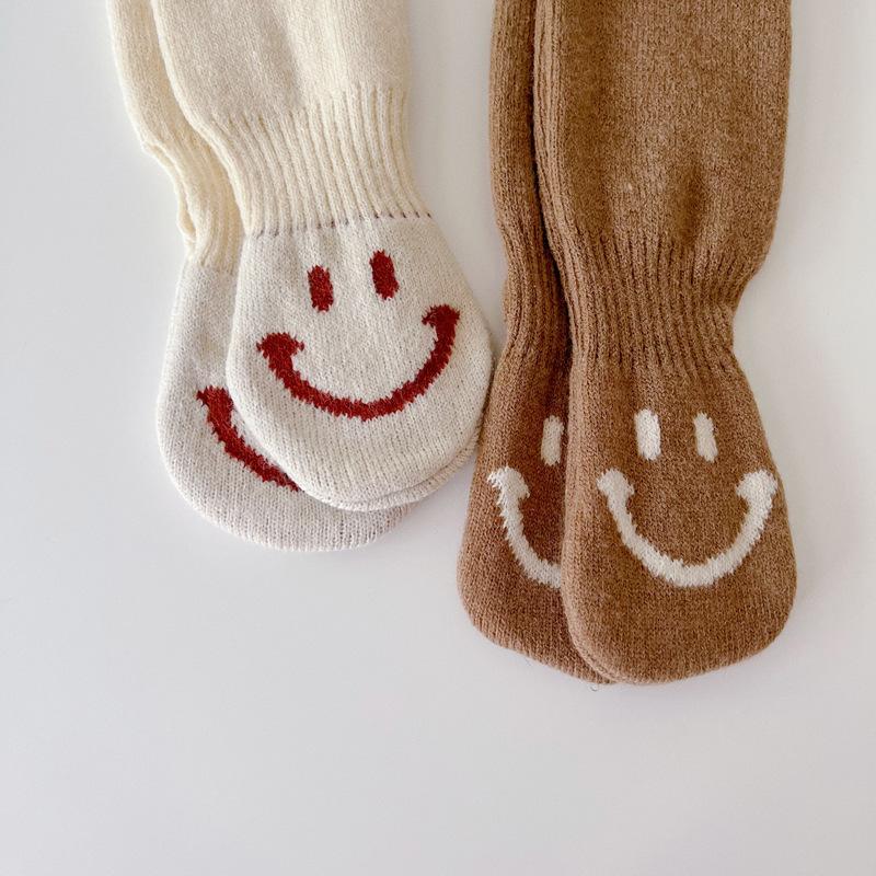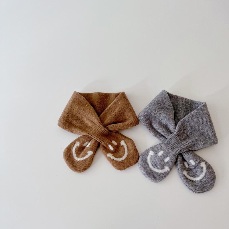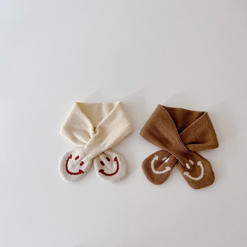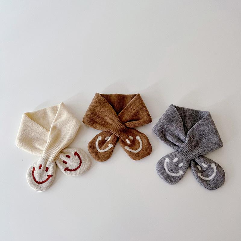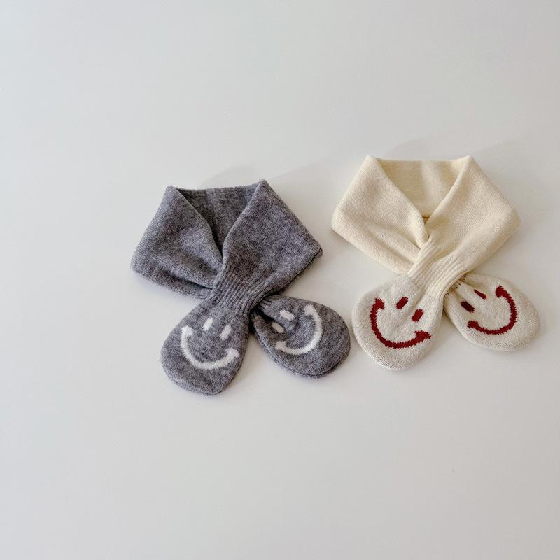 Bufanda infantil de otoño y otoño, estilo coreano, estilo ins, bufanda de punto con cara sonriente, conjunto de cuello para niño, bufanda de bebé de moda