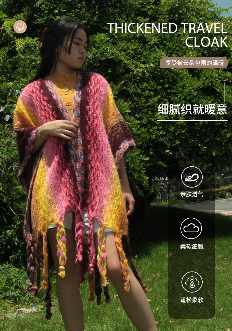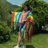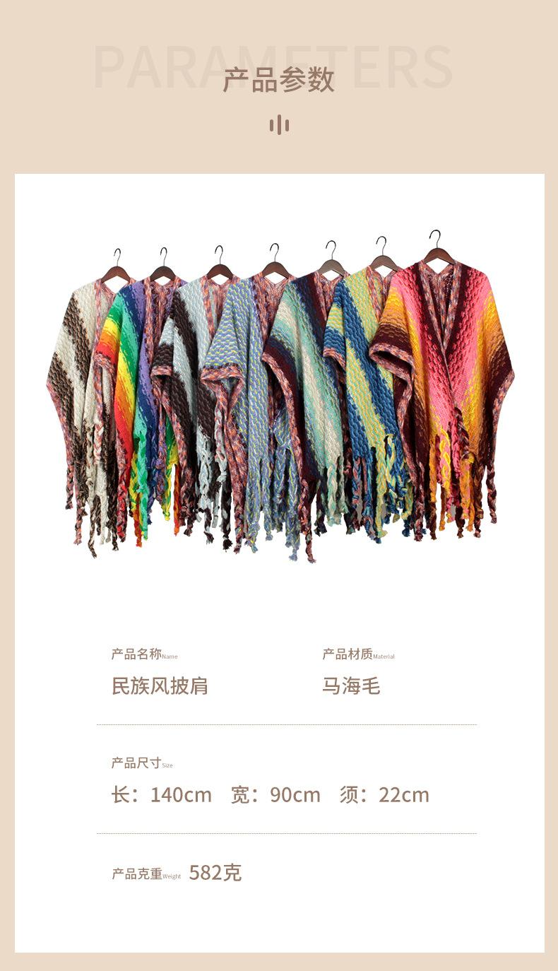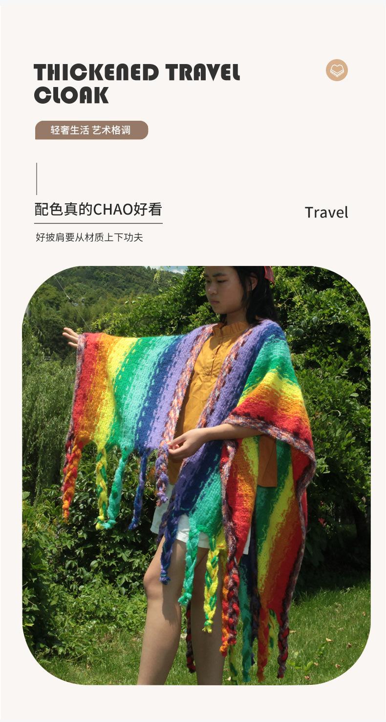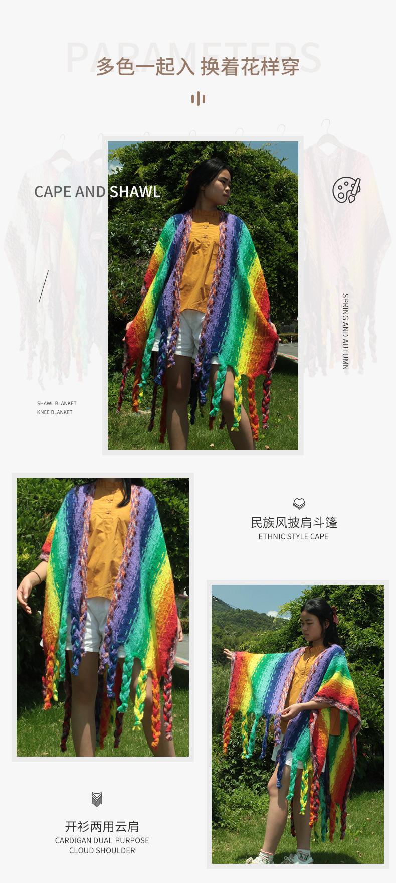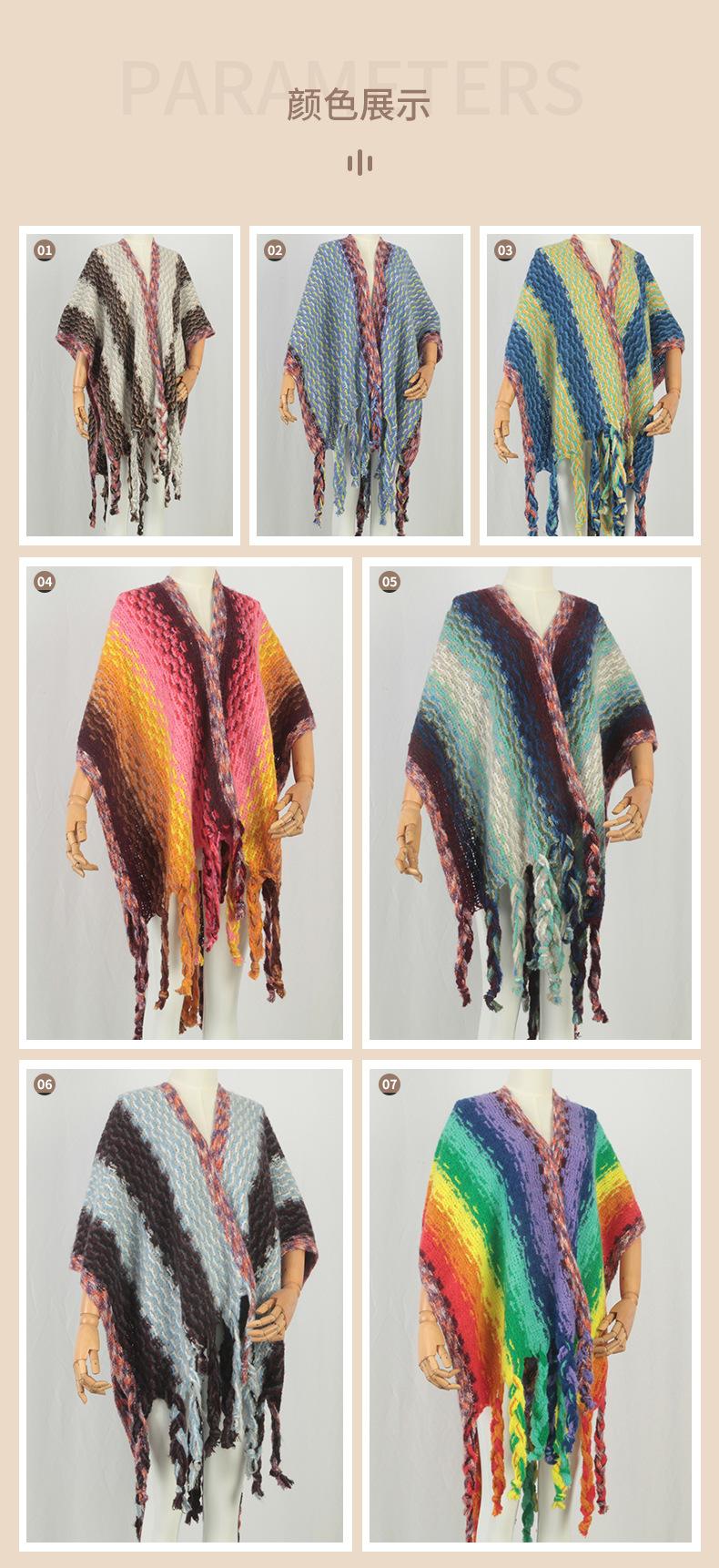 2025 Nuevo Suéter Sin Colisiones Chal Estilo Étnico Viaje Capa Tejida Cárdigan Retro de Rayas Arcoíris