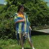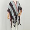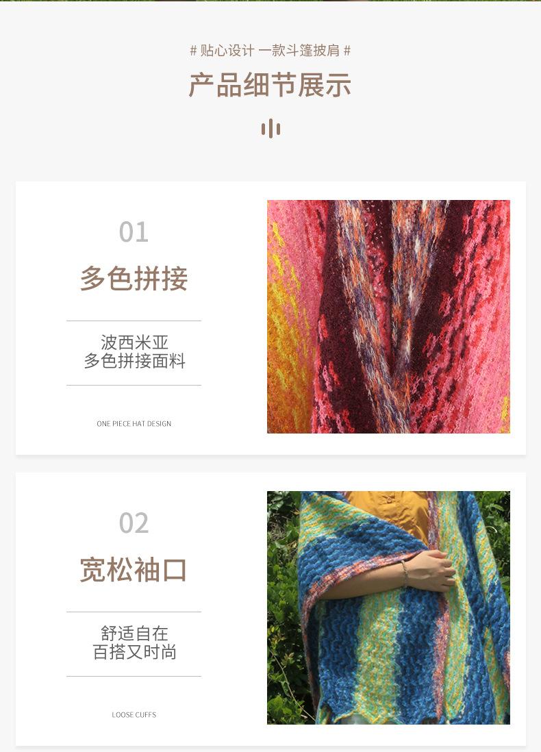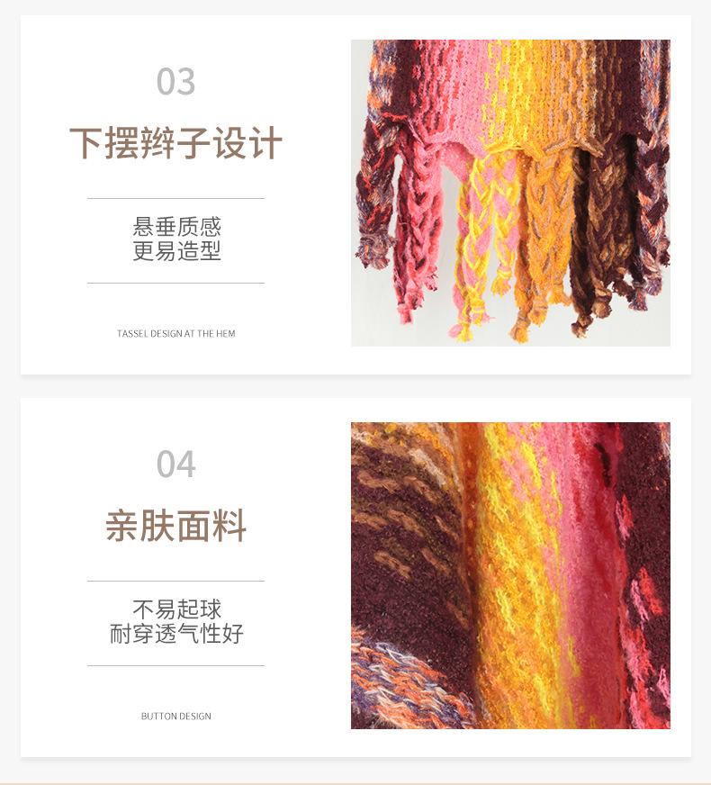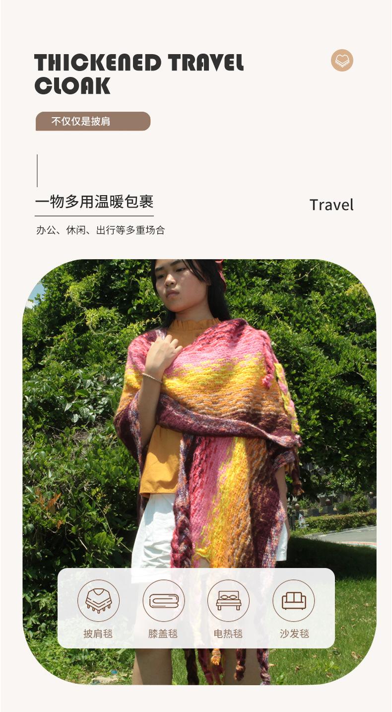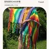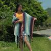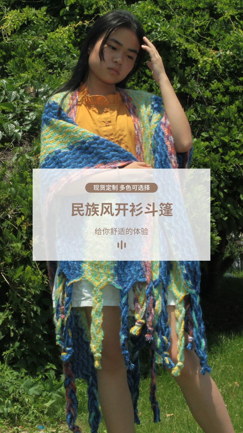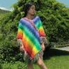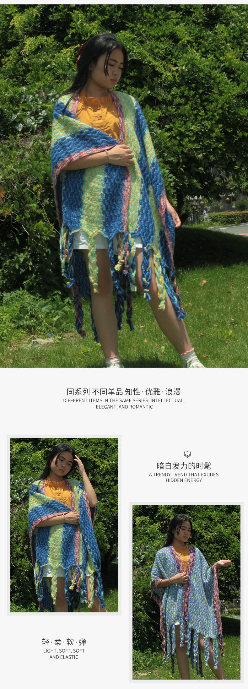 2025 Nuevo Suéter Sin Colisiones Chal Estilo Étnico Viaje Capa Tejida Cárdigan Retro de Rayas Arcoíris