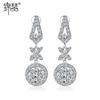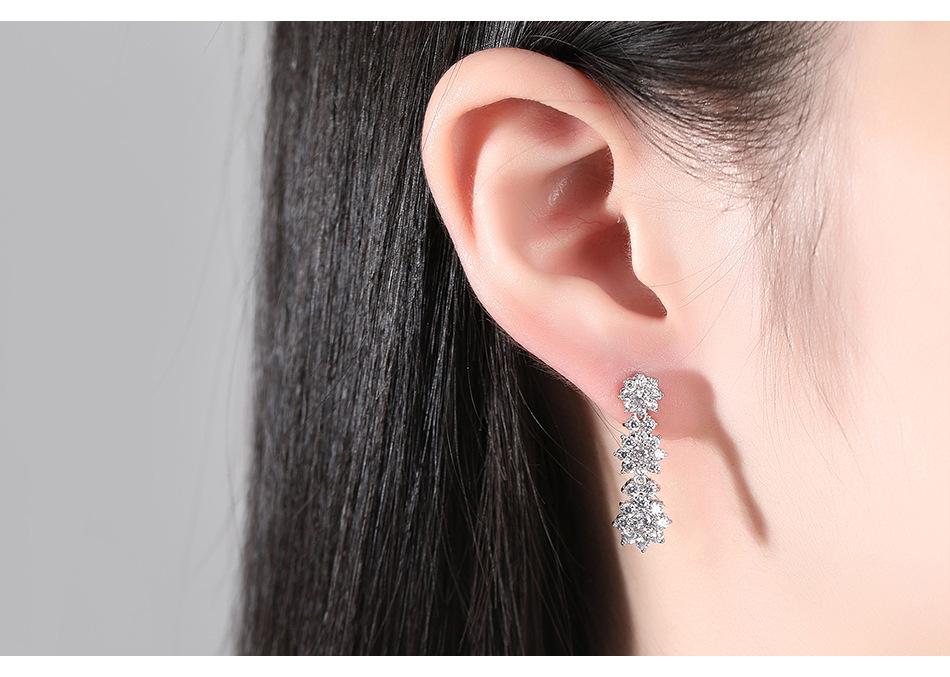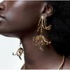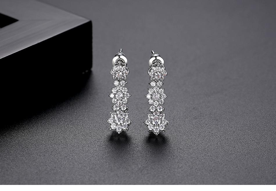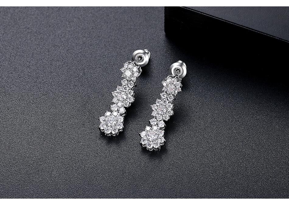 Pendientes de flores Jinse con pétalos de cobre y incrustaciones de circonitas, Europa y Estados Unidos, exagerados, largos, para banquetes, joyería de moda al por mayor
