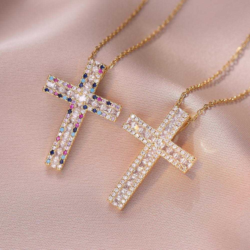 X3140 color cross necklace, X3141 white zircon cross necklace