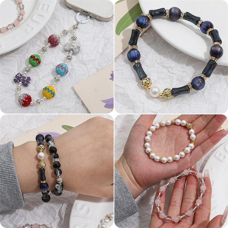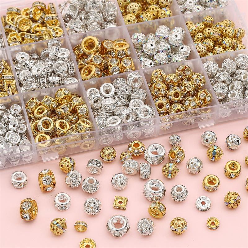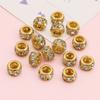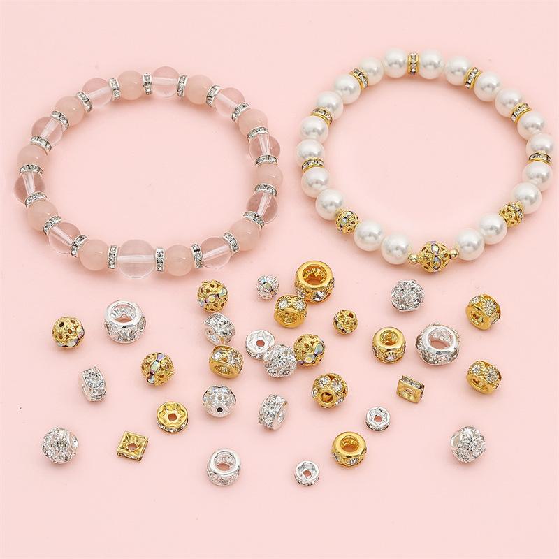 Espaciador de anillo de diamante con rueda de diamante blanco con incrustaciones de cobre, accesorios de joyería de cuentas redondas de bricolaje, espaciador de cuentas de transferencia, accesorios de pulsera de cuentas