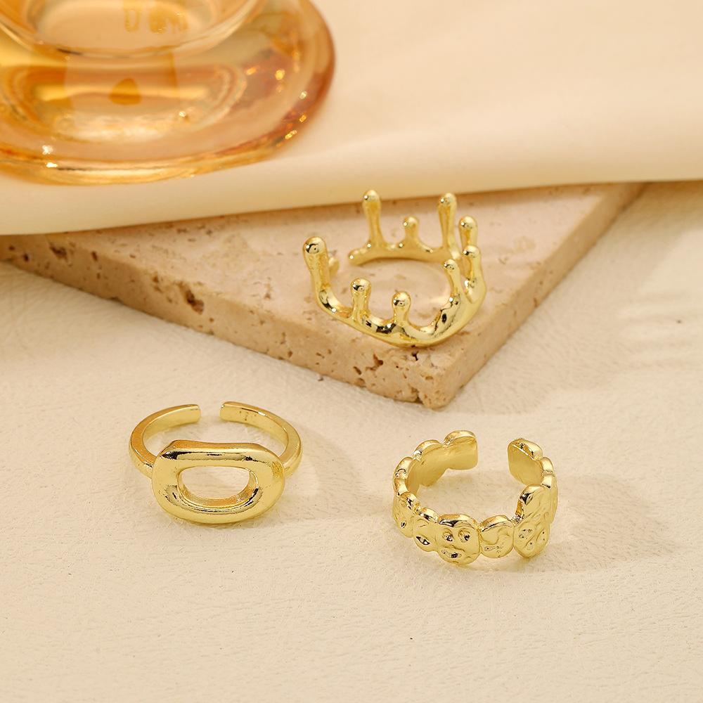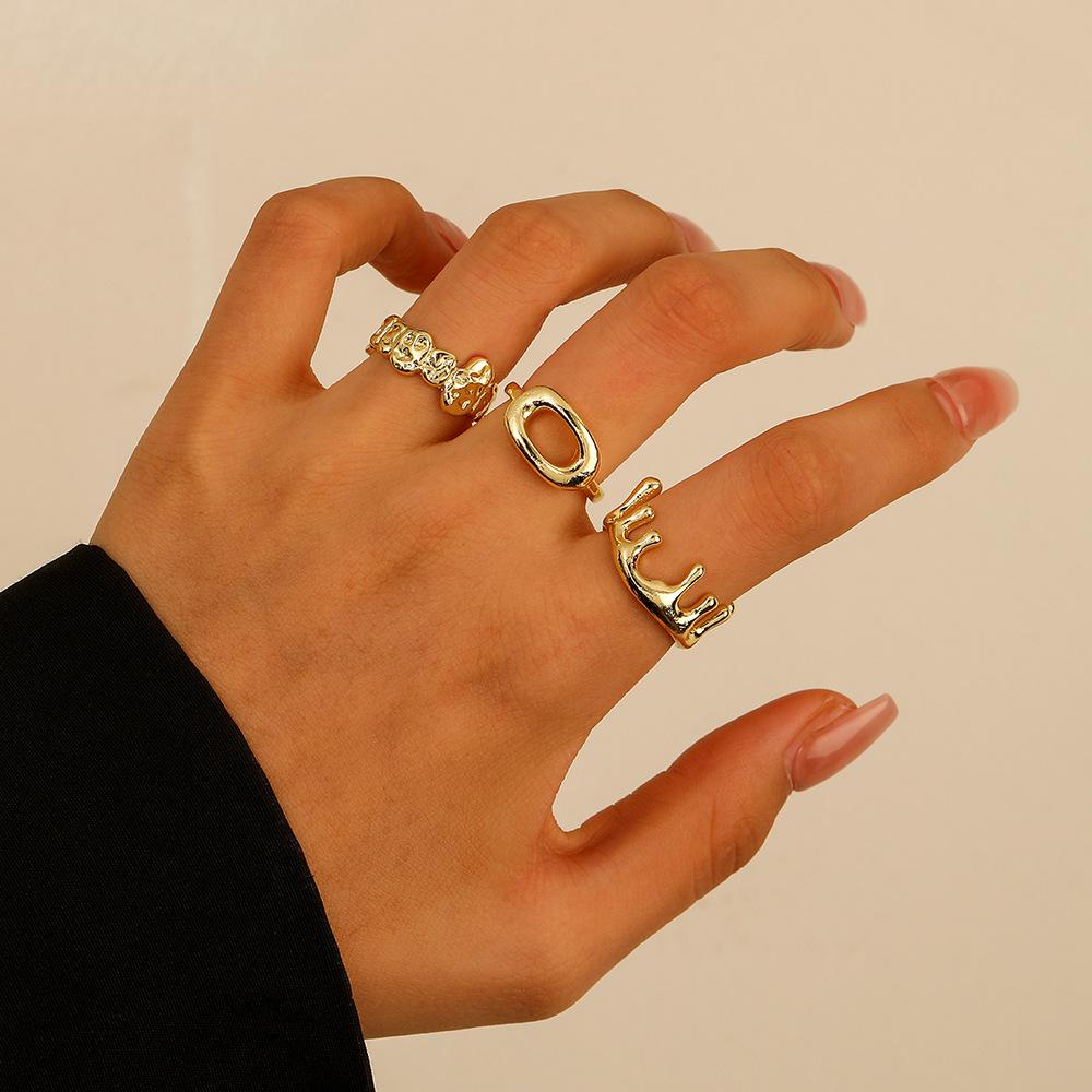 Anillo en forma de O con forma de gota de agua de lava irregular ajustable con apertura dorada que combina con todo, joyería de Amazon