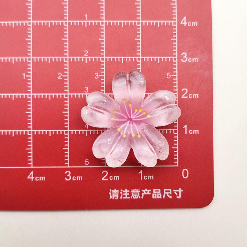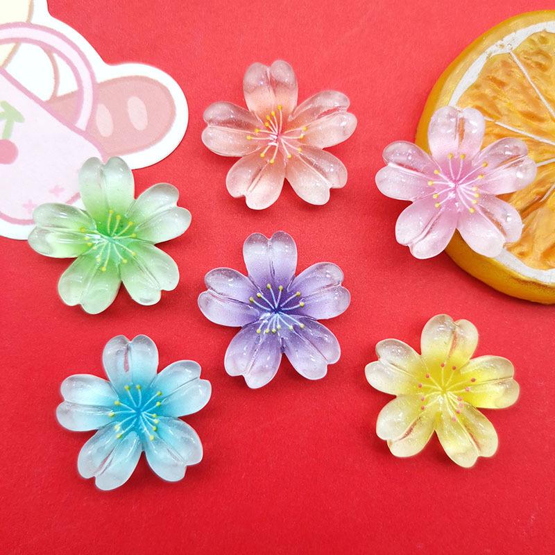 Simulación de color, flor de cerezo transparente de cinco pétalos, accesorios de resina para bricolaje, pegamento en crema, funda para teléfono móvil, horquilla, joyería, pegatinas para tazas