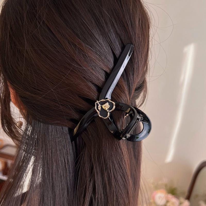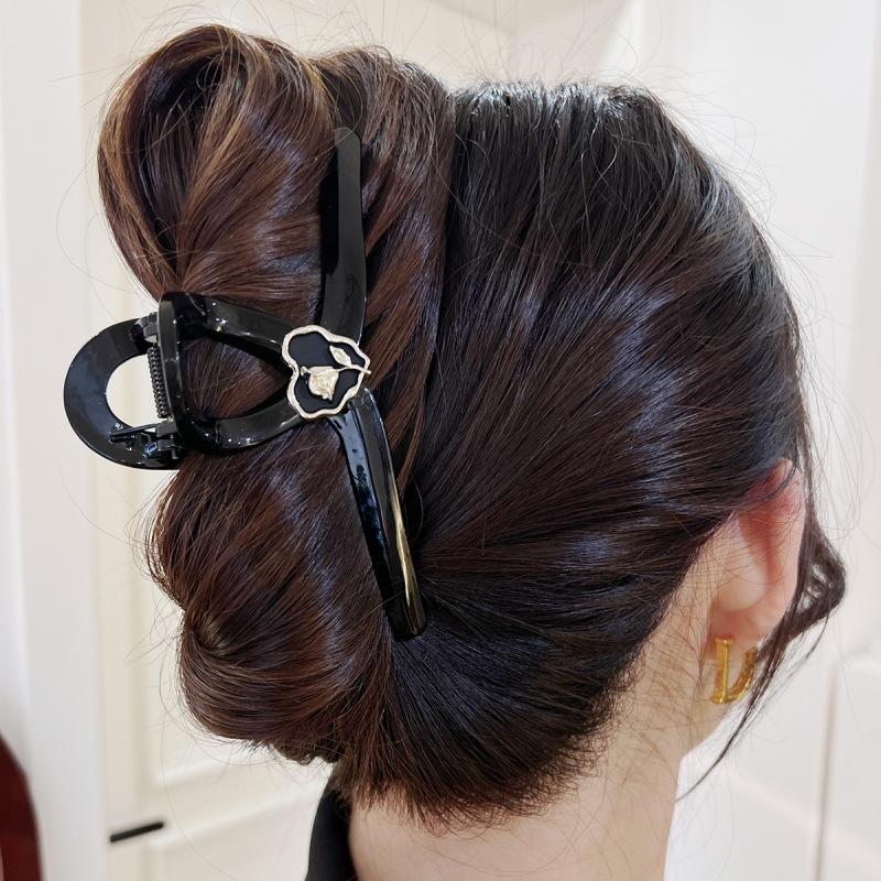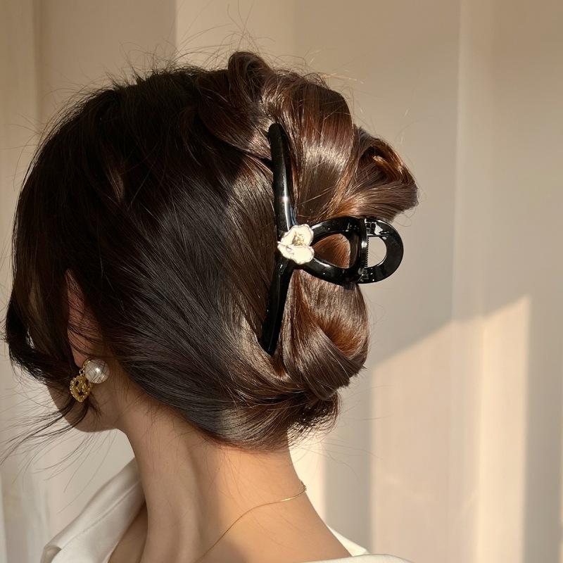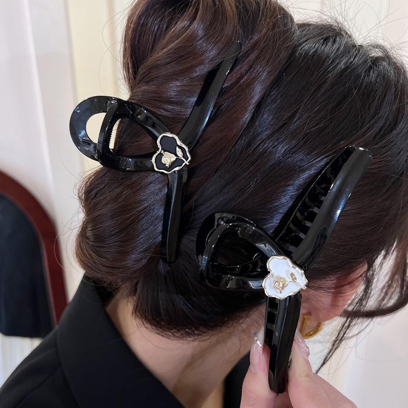 Clip de Flor Acrílico Negro Clip Grande Tocado 2025 Nuevo Clip de Tiburón Clip para el Cabello Clip para el Cabello para la Parte Posterior de la Cabeza de Mujer