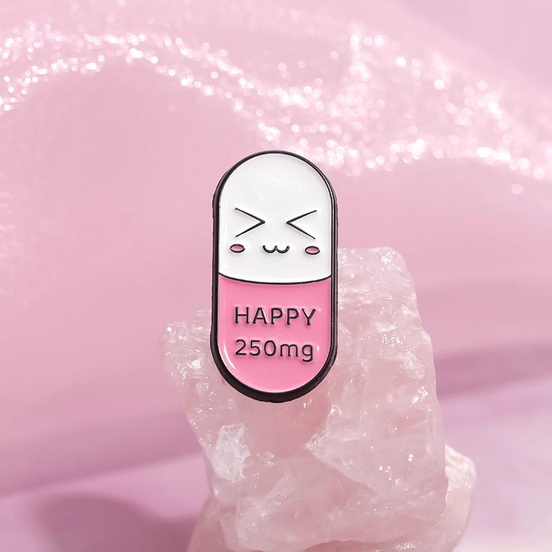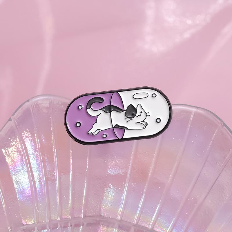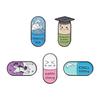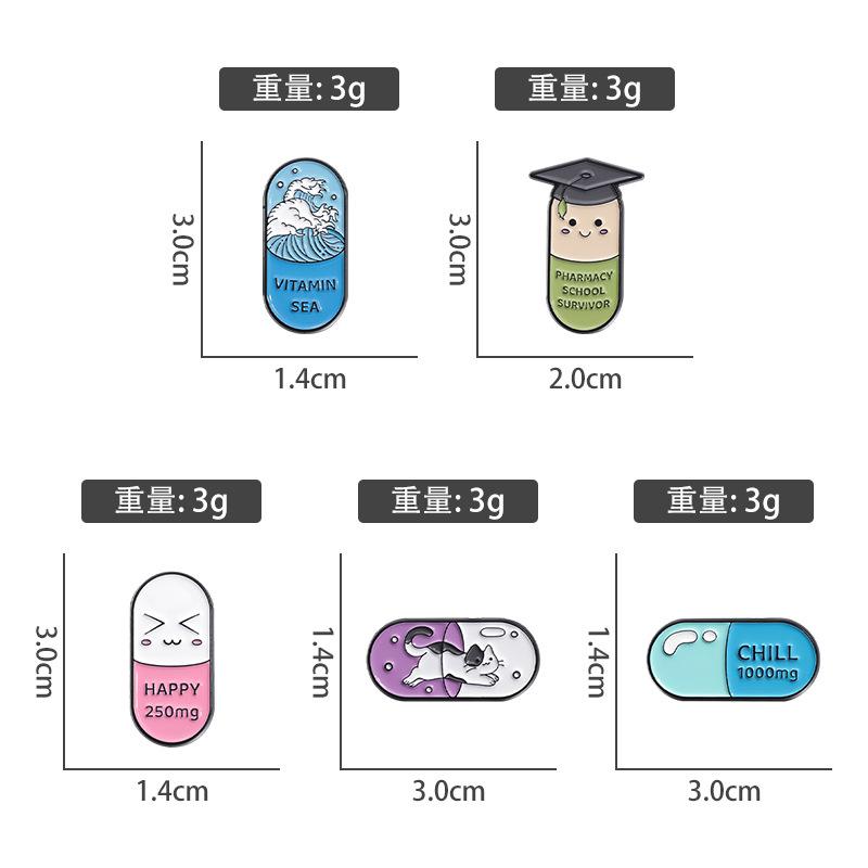 Insignia con forma de píldora de dibujos animados, divertido sombrero de médico, gatito, olas, letras inglesas, broche de pintura de metal, accesorios