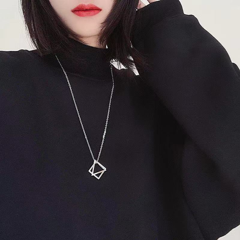 Collar geométrico cuadrado hueco de acero de titanio sin decoloración, colgante de estilo frío de marca de moda coreana para hombres y mujeres.