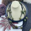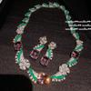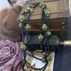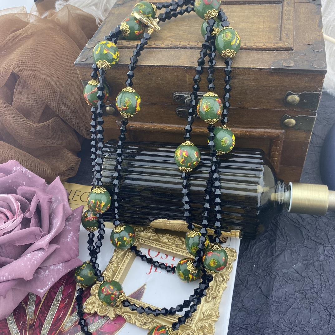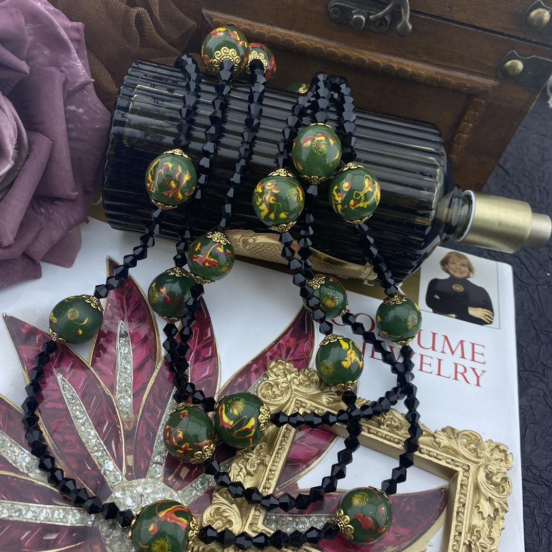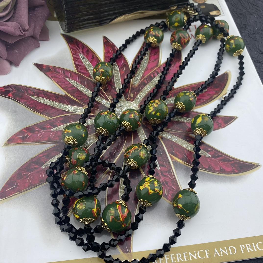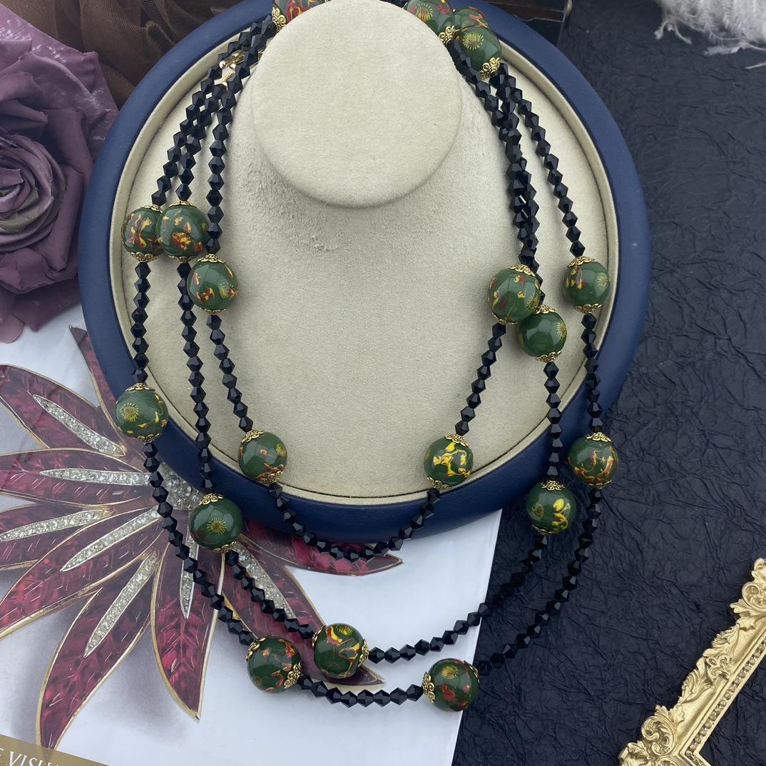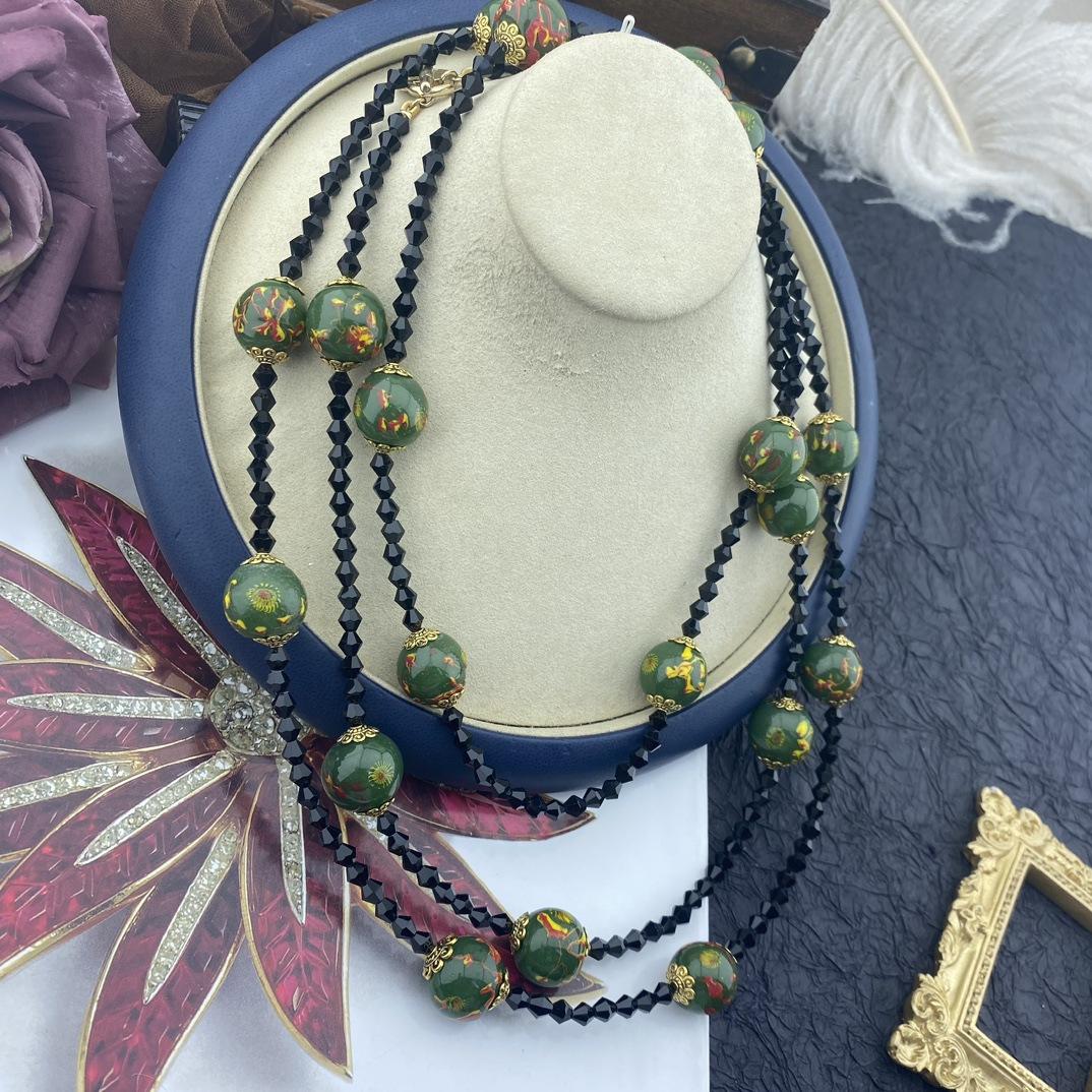 Collar largo de esmalte de color con forma de ojo de fénix verde de material antiguo vintage de Mi Nan Zhonggu con pequeñas cuentas de pétalos de lámina de oro