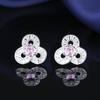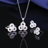 Conjunto de anillos, collares y pendientes con hojas de la suerte europeas y americanas con ondas de diamantes transfronterizas, accesorios elegantes de alta gama para mujer.