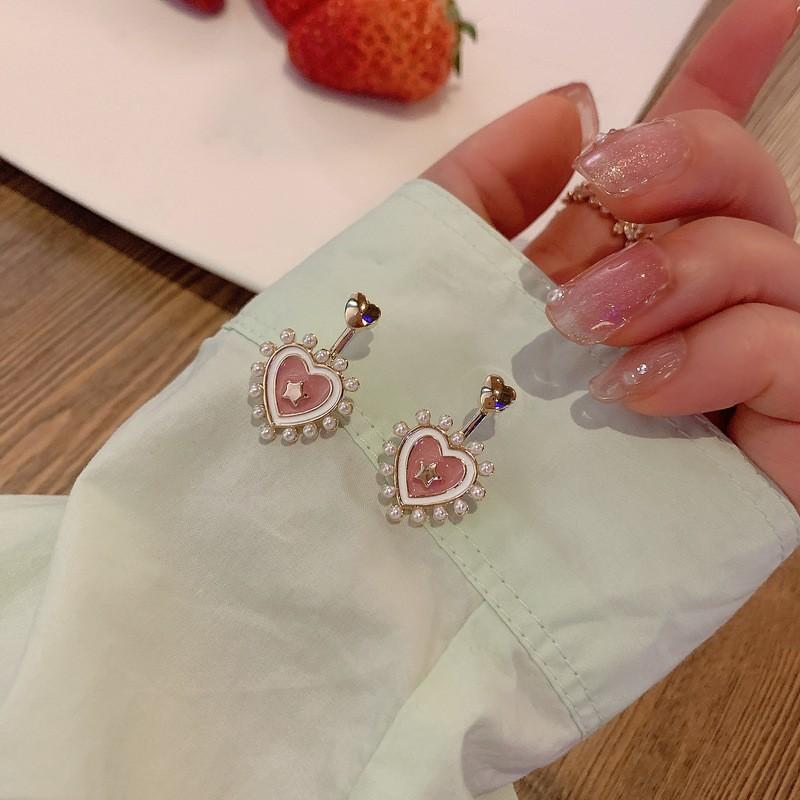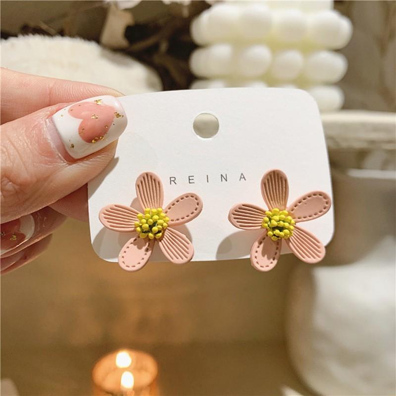 Corea del Sur Dongdaemun Aguja de Plata S925 Diseño Nicho Aretes Rosas para Niña Dulces Simples Combinan con Todo Aretes para Mujer
