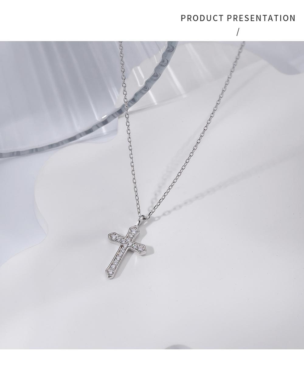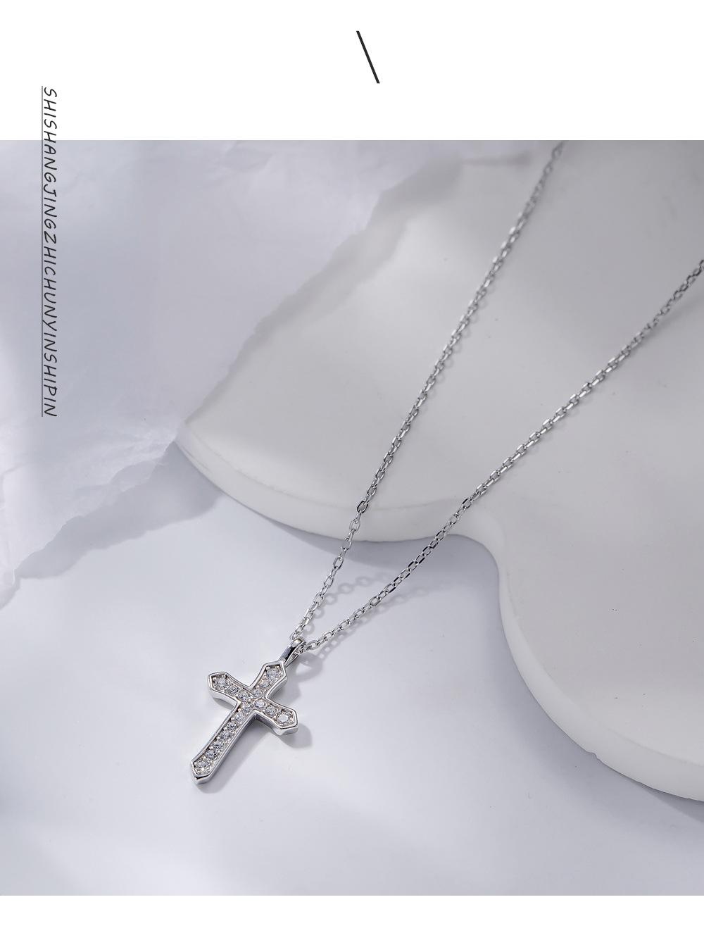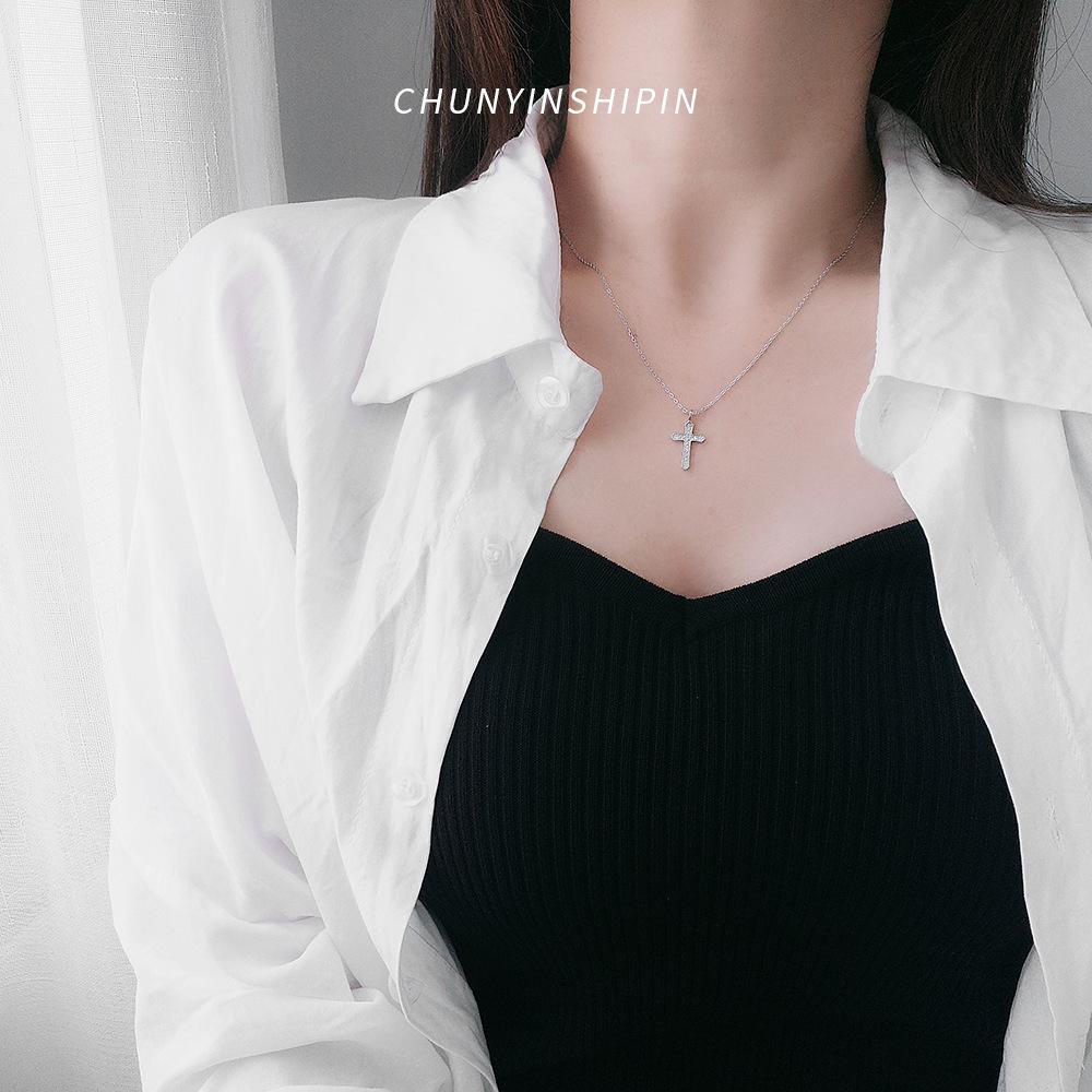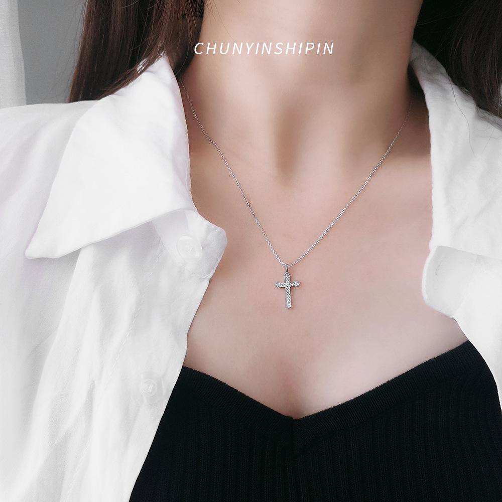 Collar con cruz de diamantes en plata de ley S925, elegante joya de nicho, cadena de clavícula cruzada sencilla y combinable, accesorios para mujer