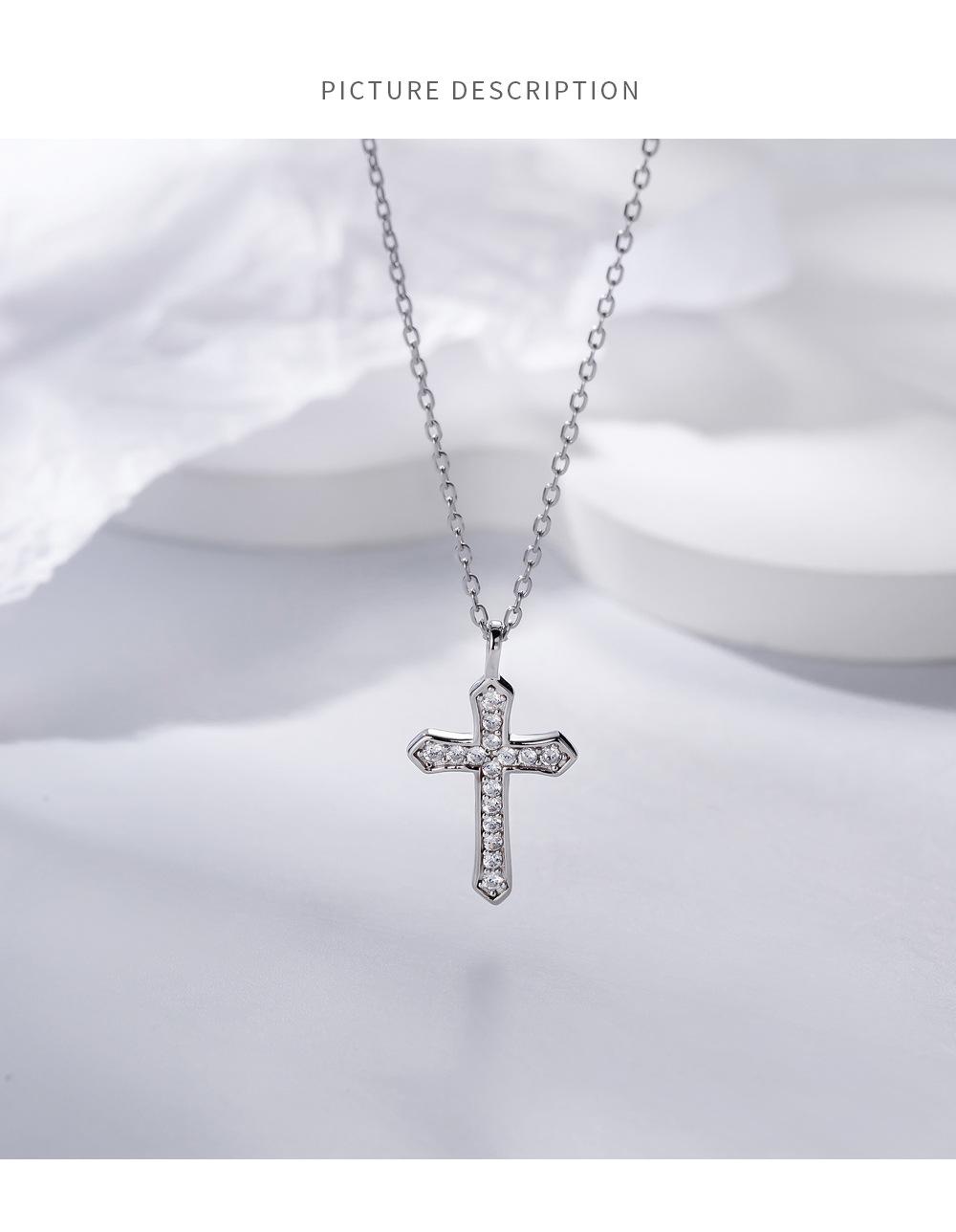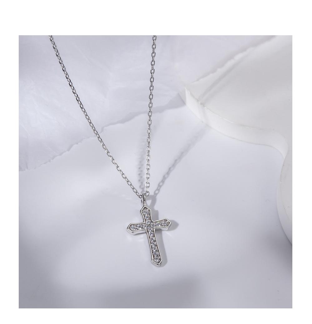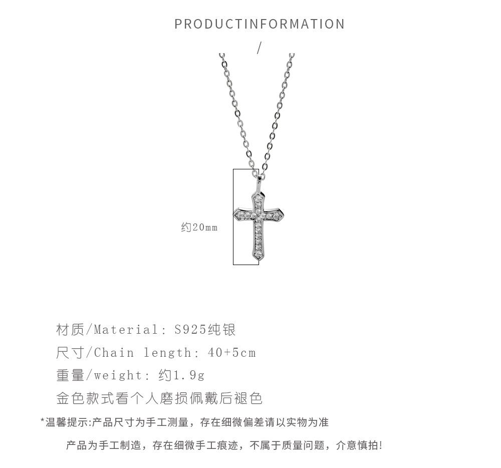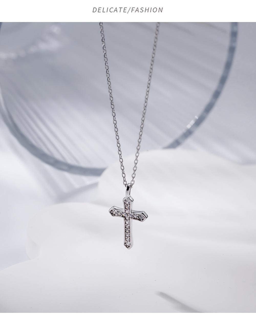 Collar con cruz de diamantes en plata de ley S925, elegante joya de nicho, cadena de clavícula cruzada sencilla y combinable, accesorios para mujer