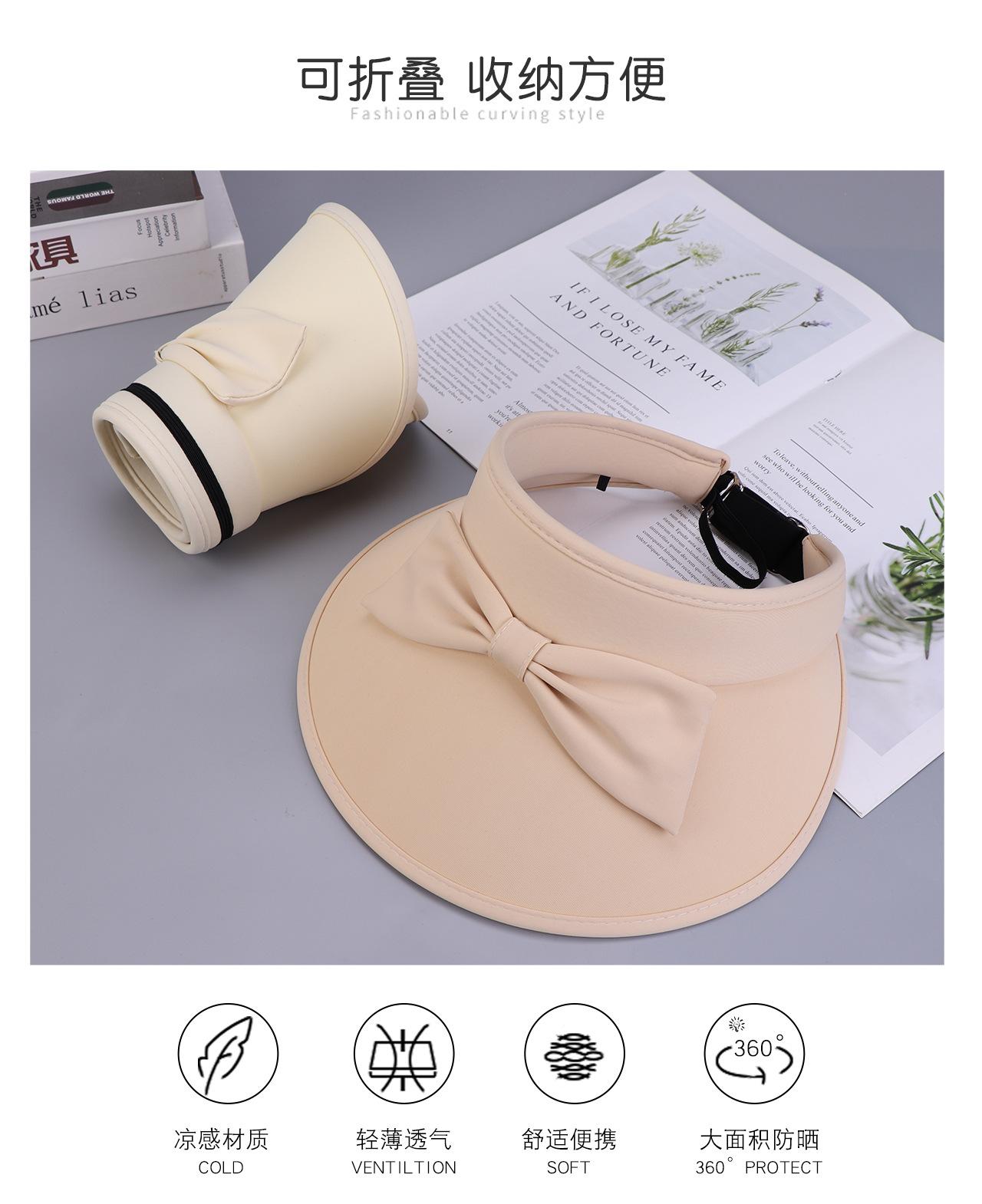 Sombrero de verano de seda helada de color liso, anti-UV, con ala grande, para mujer, plegable, deportivo, con lazo, vacío
