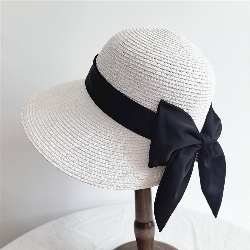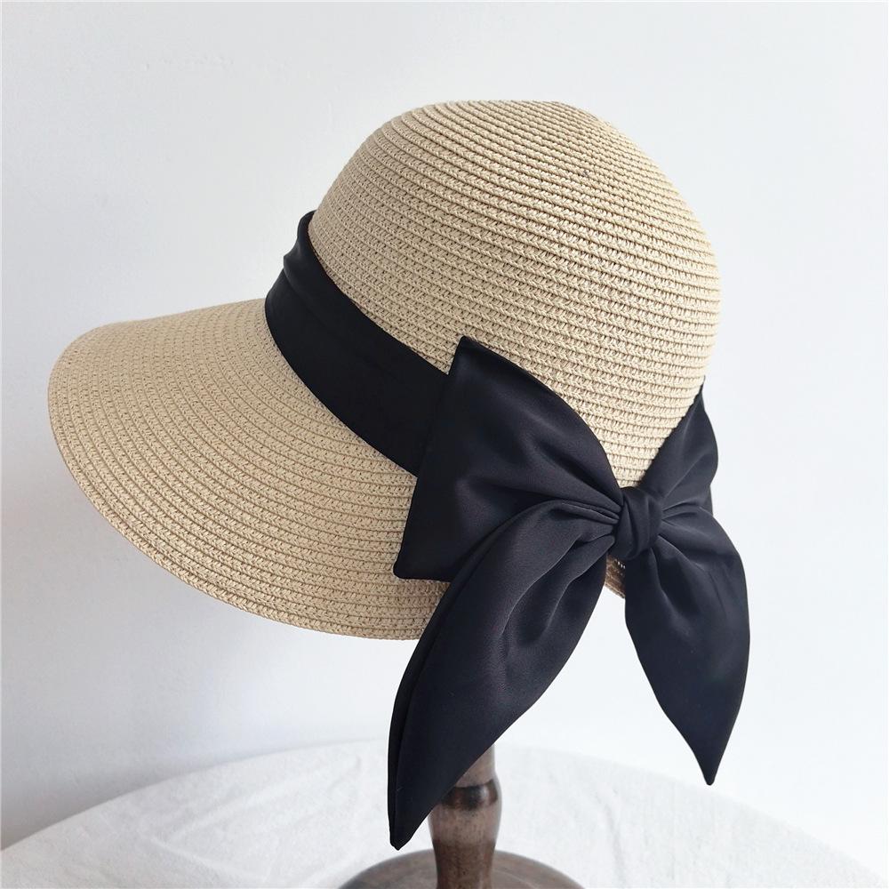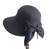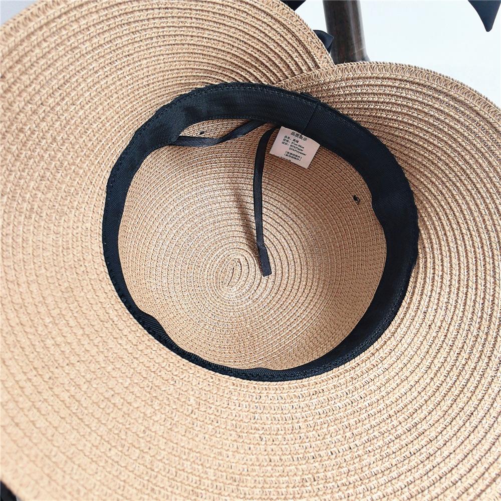 Sombrero de Mujer Primavera y Verano Viaje Chifón Lazo Cinta Frente Largo Atrás Corto Atrás Práctico Sombrero de Ala Ancha Protección Solar Sombrero de Paja de Ala Grande
