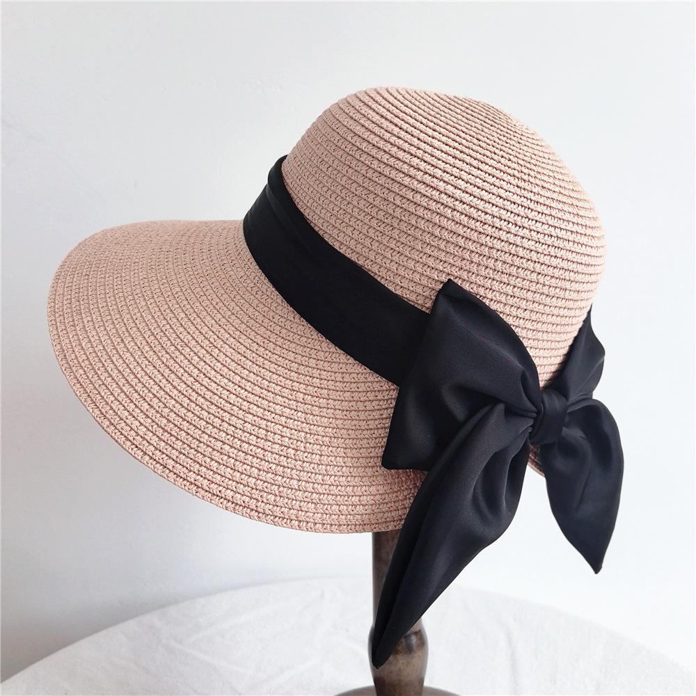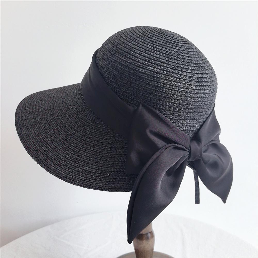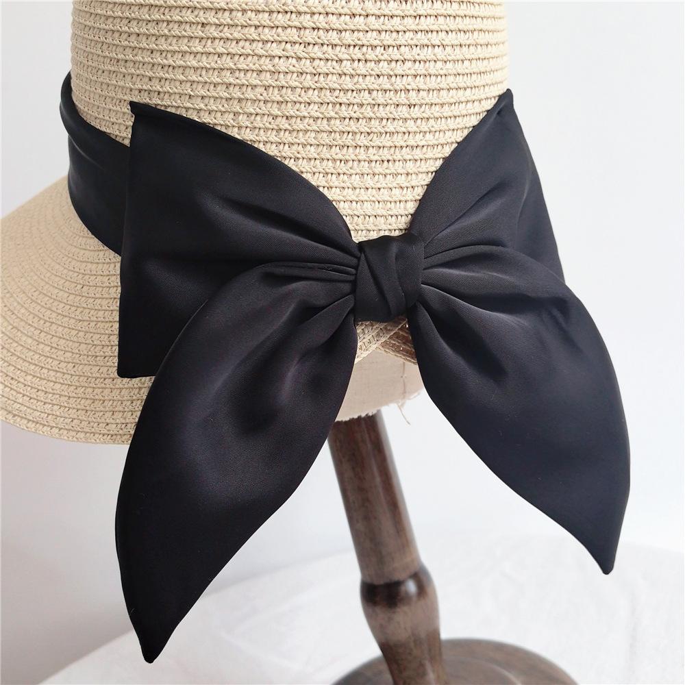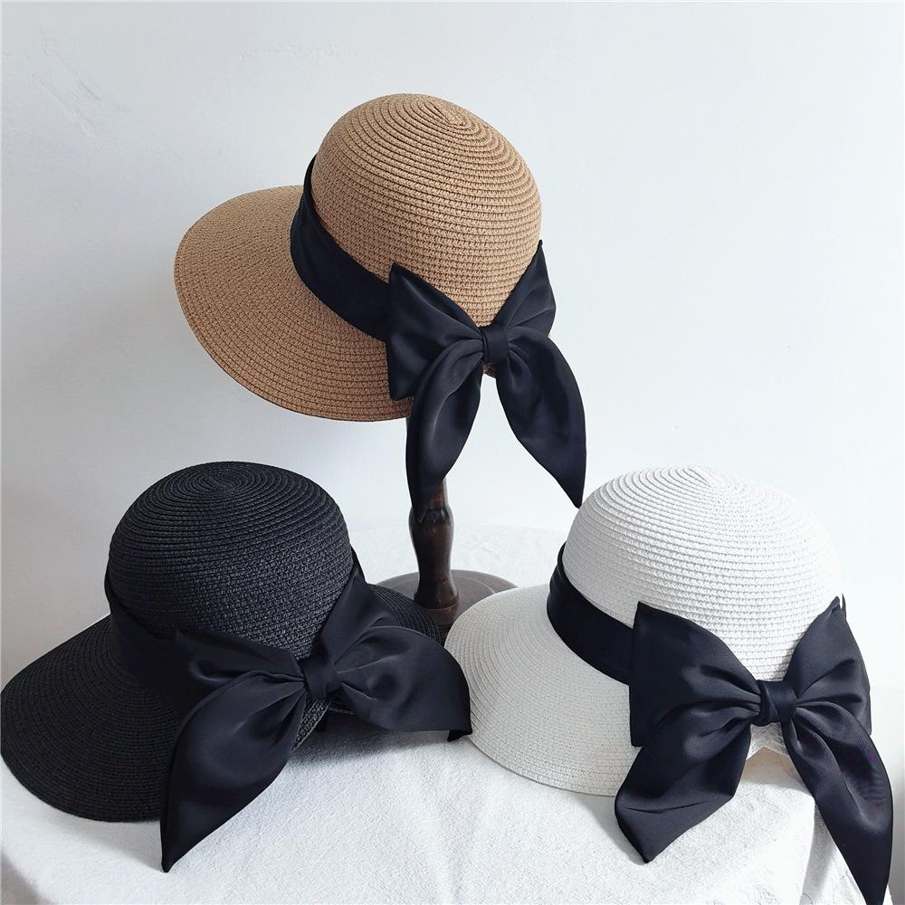 Sombrero de Mujer Primavera y Verano Viaje Chifón Lazo Cinta Frente Largo Atrás Corto Atrás Práctico Sombrero de Ala Ancha Protección Solar Sombrero de Paja de Ala Grande
